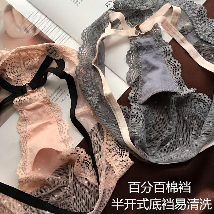 European and American underwear sexy hollow lace polka dot thong women’s sports mesh seamless breathable Peach Hip underwear