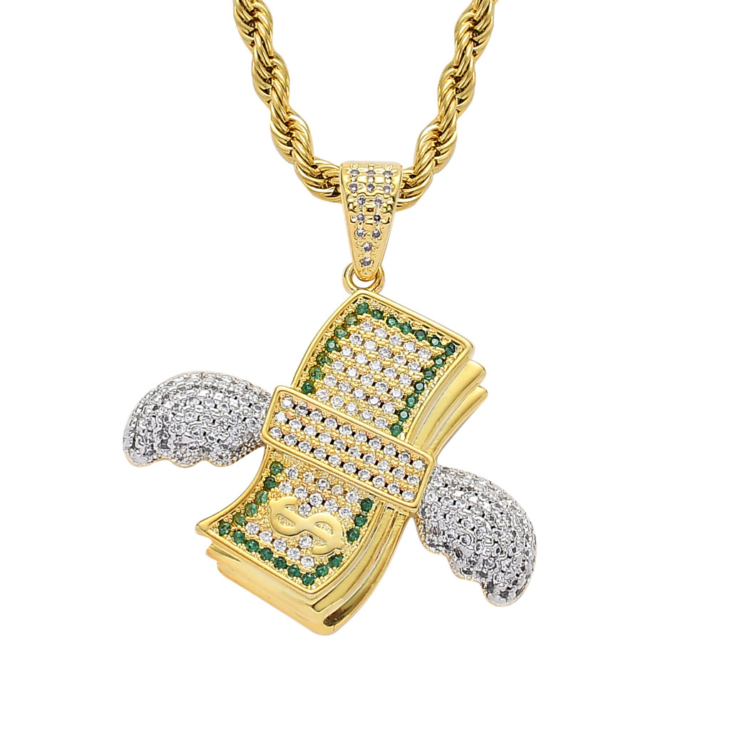 | nameOriginal | European and American Wings US Dollar Pendant Personalized European and American Hip Hop Style Micro-inlaid Zircon Men's Trendy Necklace Jewelry |