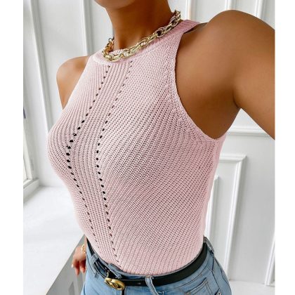 | nameOriginal | European and American wish independent station summer new sexy short white hollow round neck pullover knitted solid color vest for women |