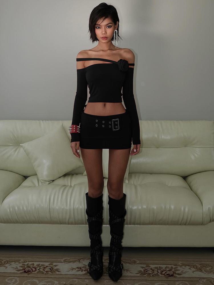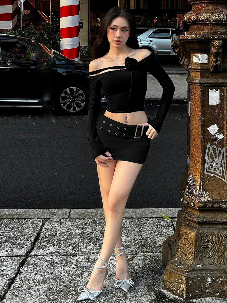 | nameOriginal | European and American women's clothing 2023 autumn and winter New Fashion three-dimensional flower off-shoulder long sleeve top off-shoulder navel T-shirt for women |