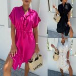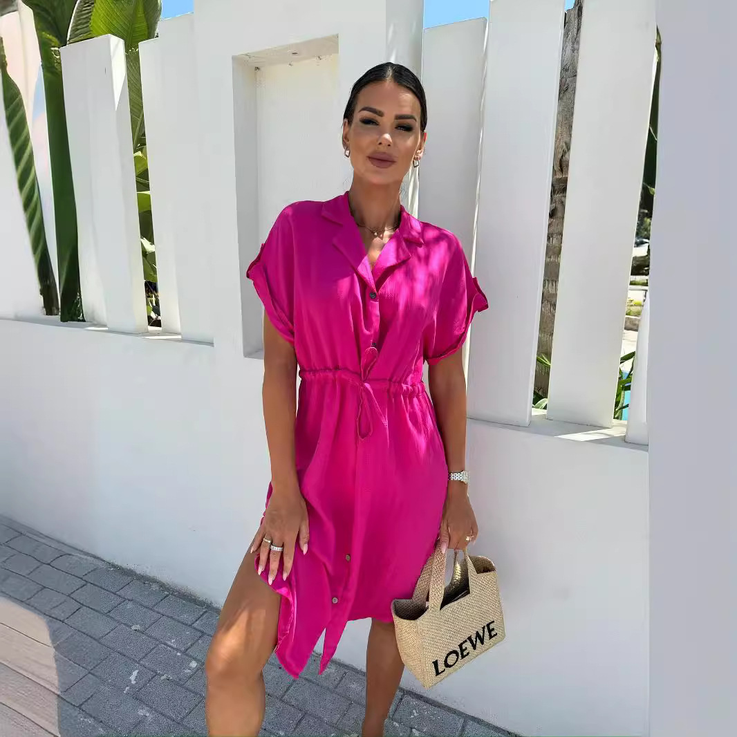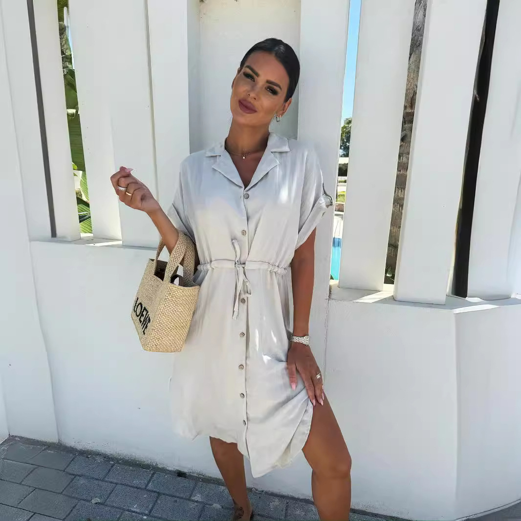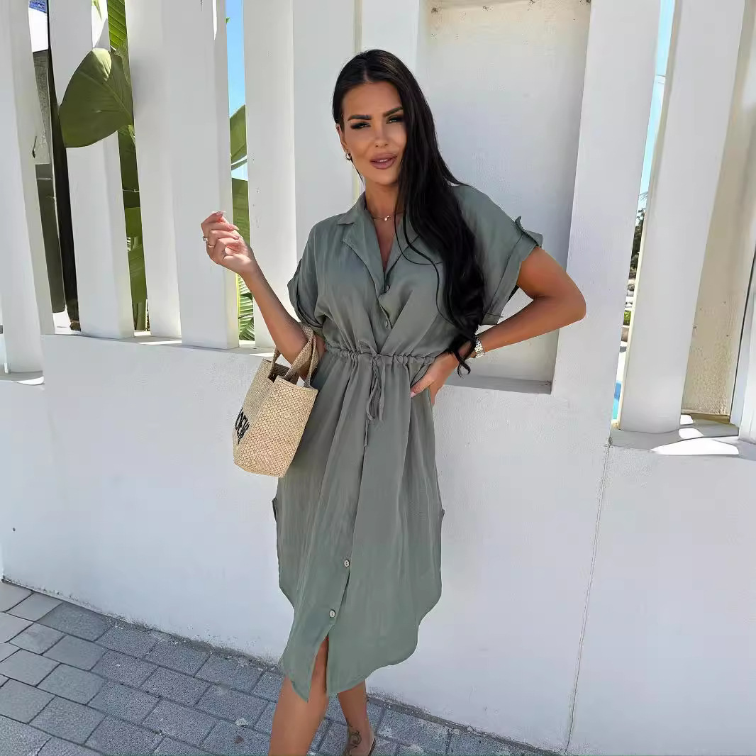 | nameOriginal | European and American Women's Clothing Foreign Trade Women's Clothing European and American Cross-border Amazon Solid Color Casual Single Row Button Short Sleeve Skirt dress |