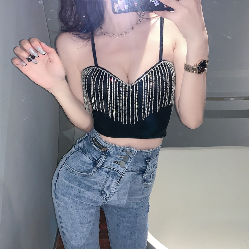 | nameOriginal | European and American Women's Hot Selling Amazon Solid Color Stitching Bright Diamond Tassel Chest Navel Camisole Vest 12000 |