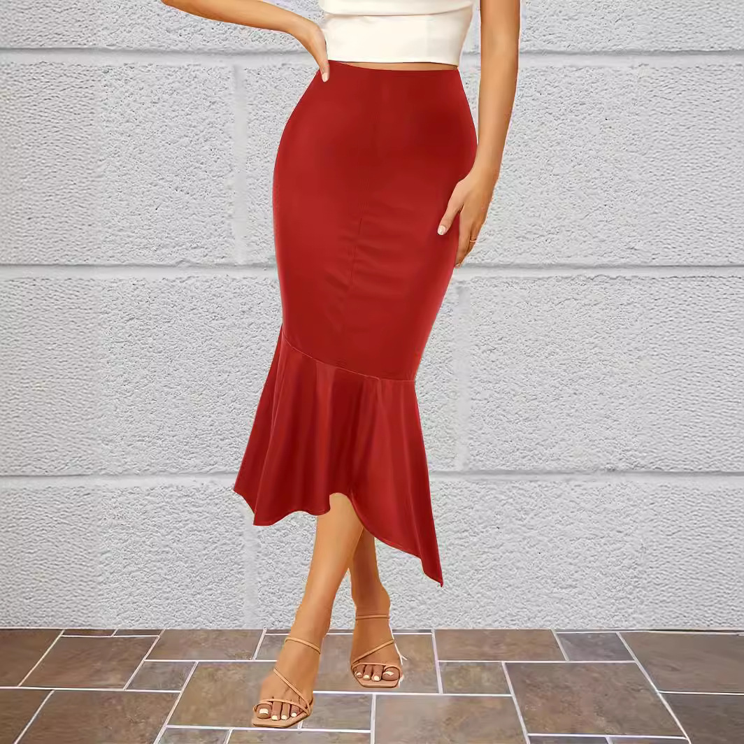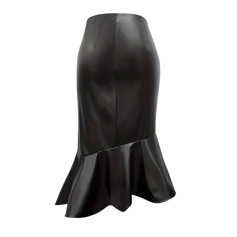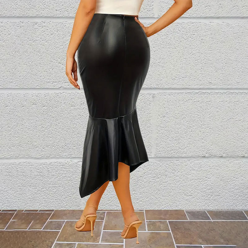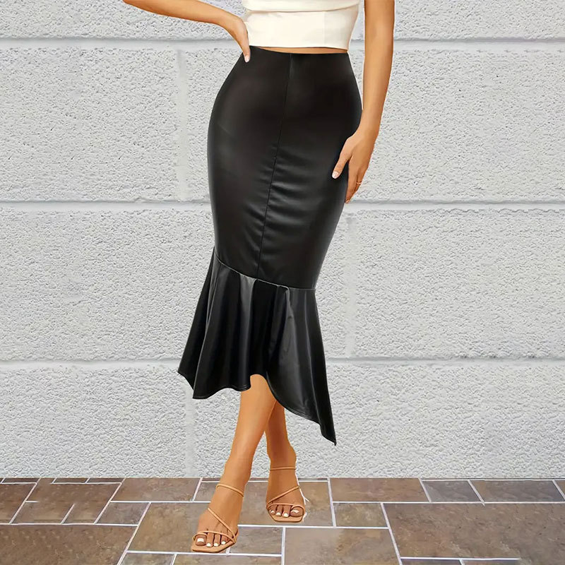 | nameOriginal | European and American women's irregular lotus leaf hem slim PU skirt commuter sheath leather skirt mid-length skirt one-piece delivery |