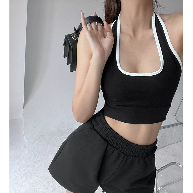 European and American women's summer slim elastic navel-baring halter neck in contrasting colors
