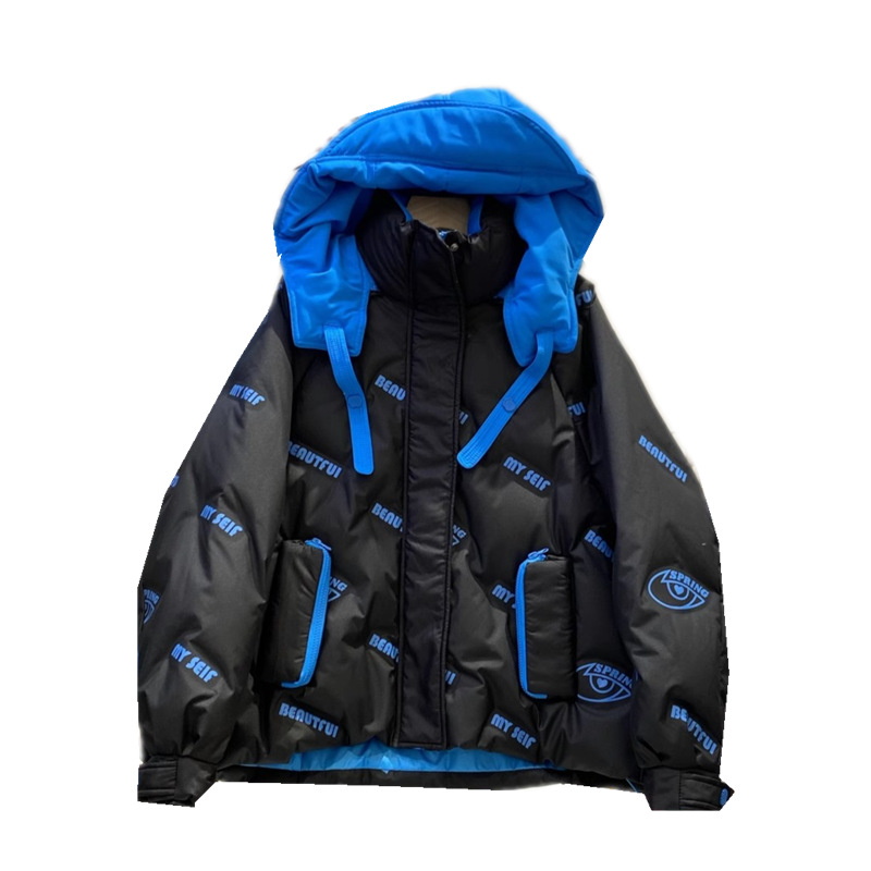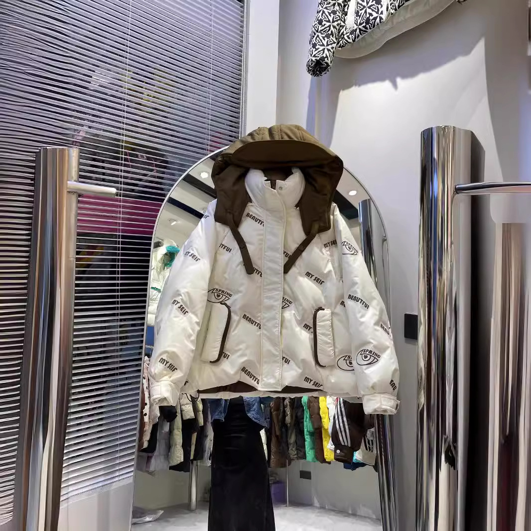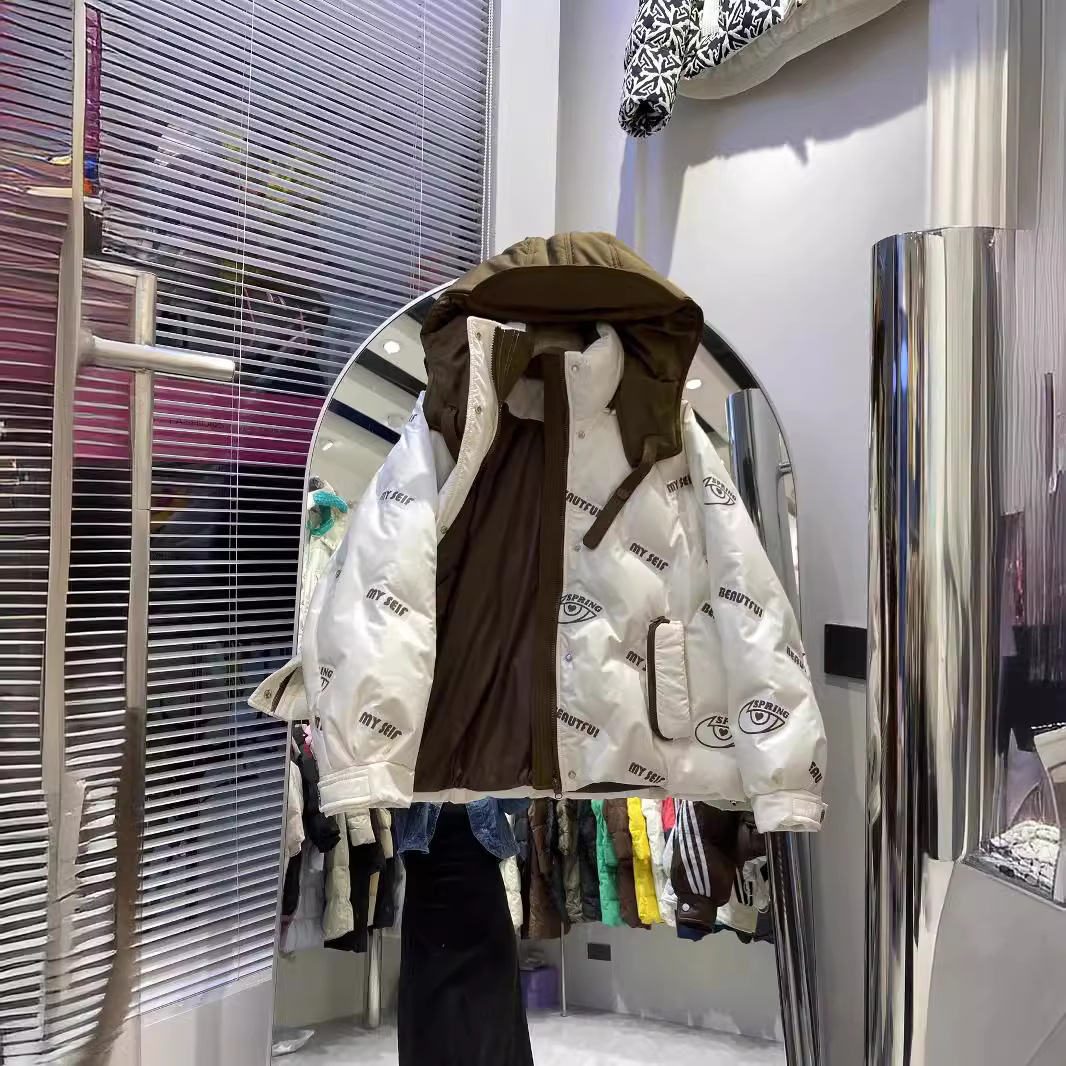 | nameOriginal | European Contrast Color Stitching Hooded Thickened Down Jacket Women's Short 2024 Winter New White Duck Down Jacket for Small Men |