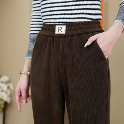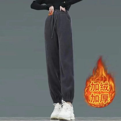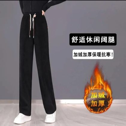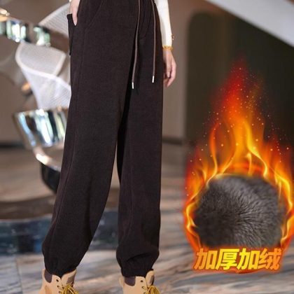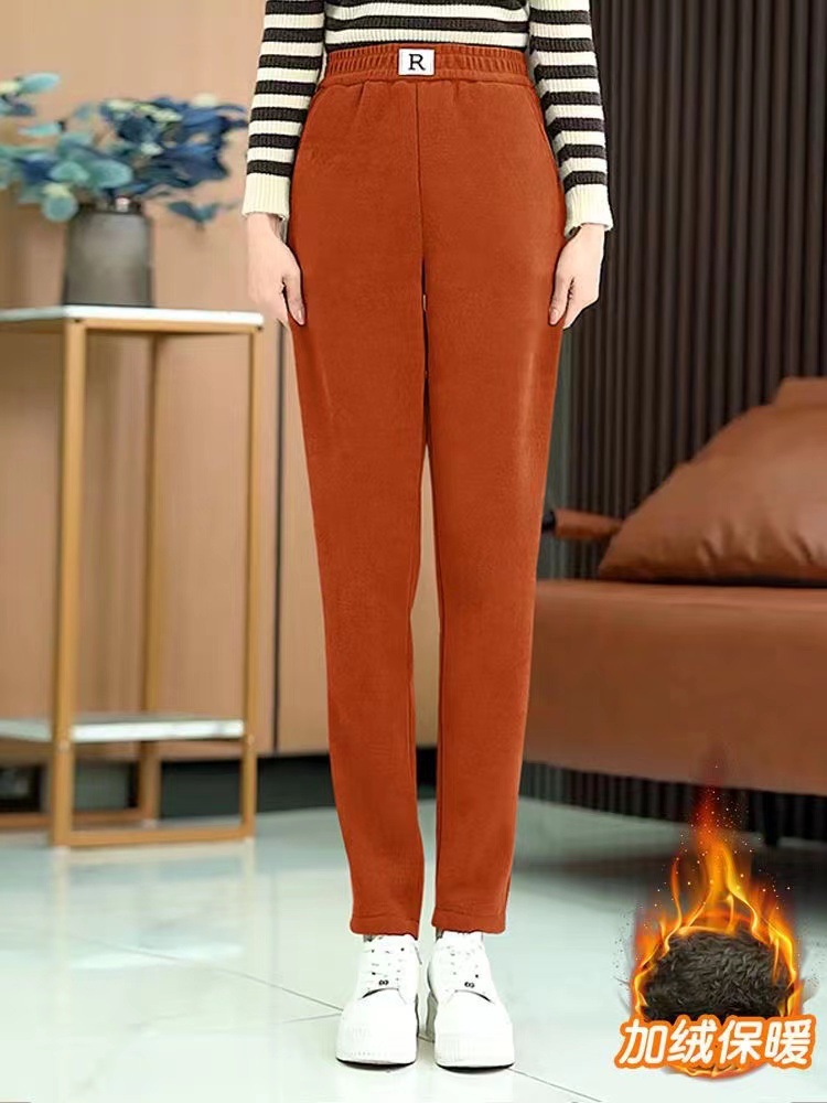 European cotton velvet Harem pants women’s 2023 autumn and winter fleece-lined thickened high waist outerwear casual Joker straight pants radish pants