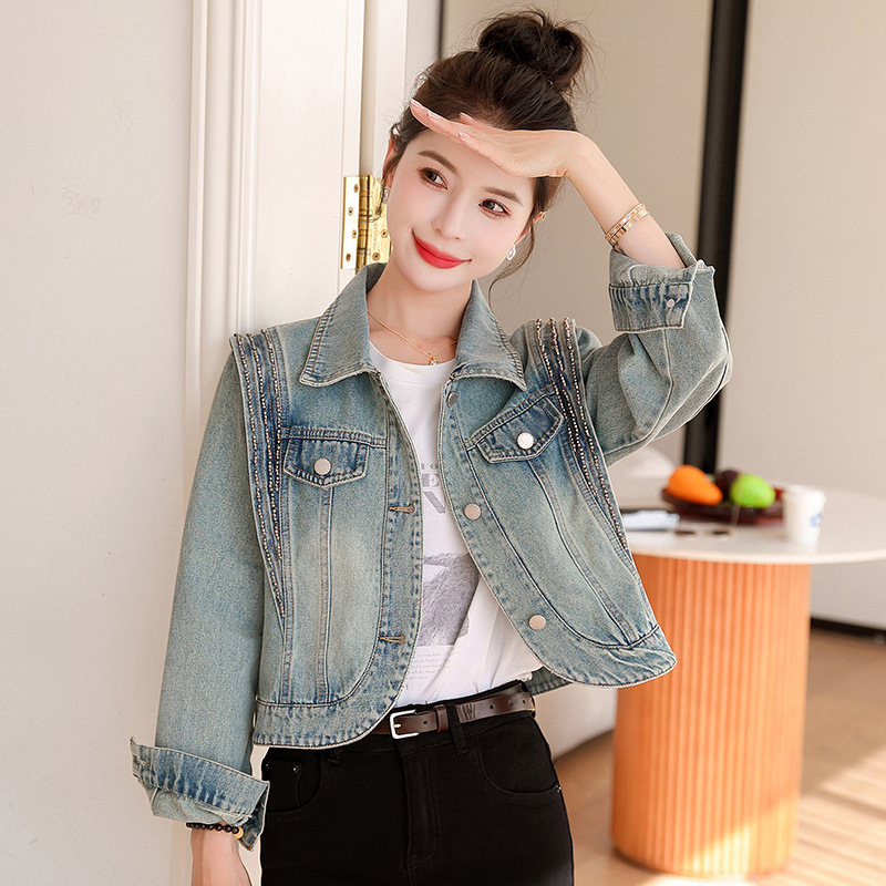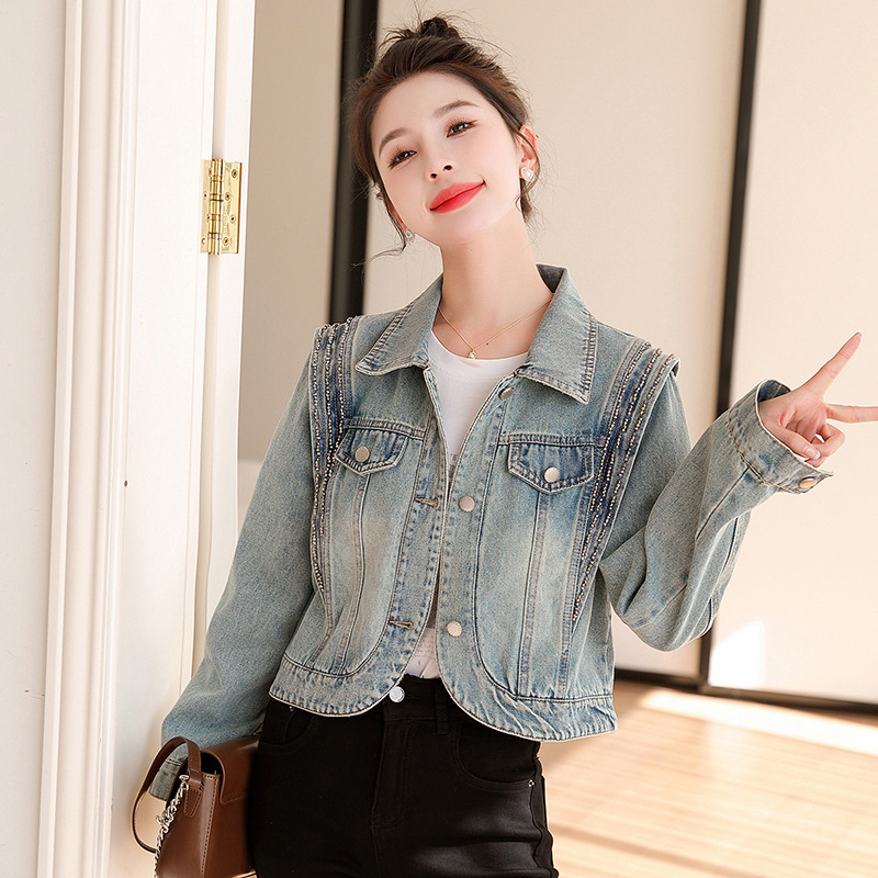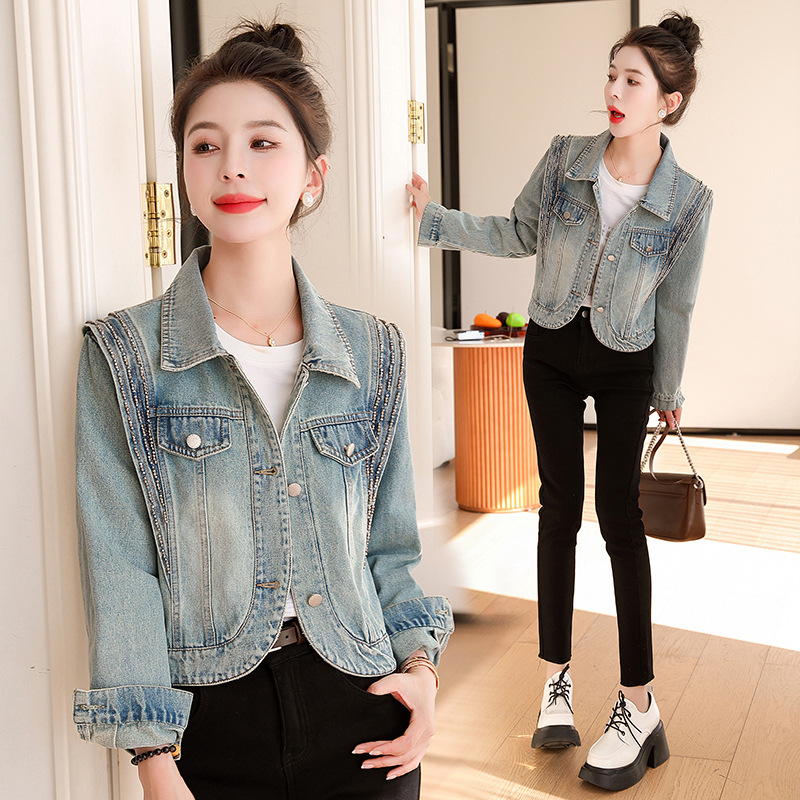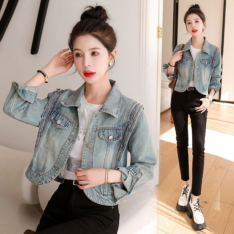 | nameOriginal | European Denim Jacket Women's Beaded Top 2024 Spring New Arrival Small Hong Kong Style Design Short Jacket Top |