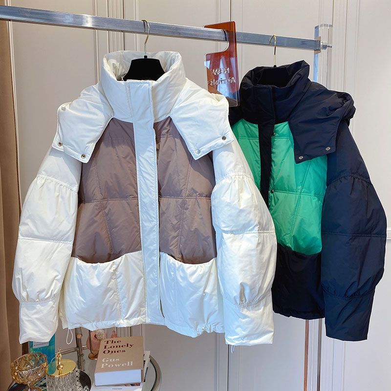 | nameOriginal | European design sense niche loose stitching contrast color hooded down cotton-padded coat women's winter coat 2024 New |