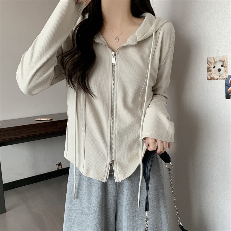| nameOriginal | European Double Zipper Hooded Sweater Jacket Women's Summer Thin plus size chubby girl Outer Cardigan Irregular Fishbone Top |