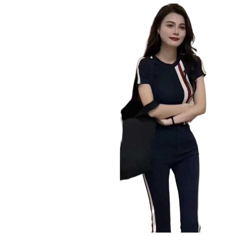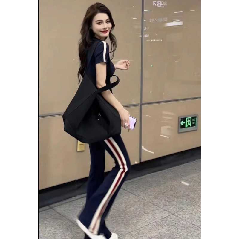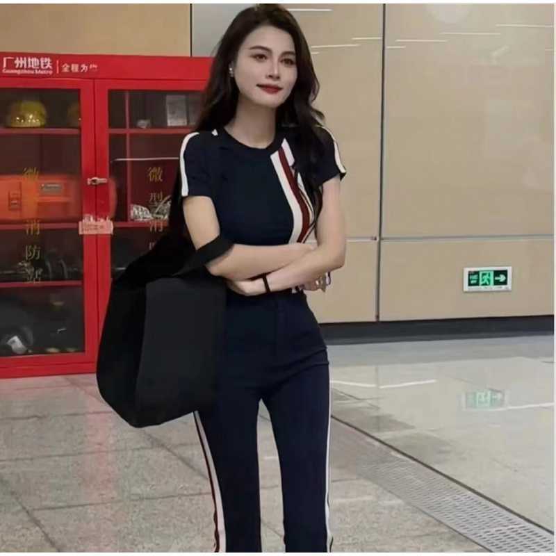 | nameOriginal | European goods summer short-sleeved sports suit women's 2024 new fashion western-style slim slim flared pants two-piece fashion |