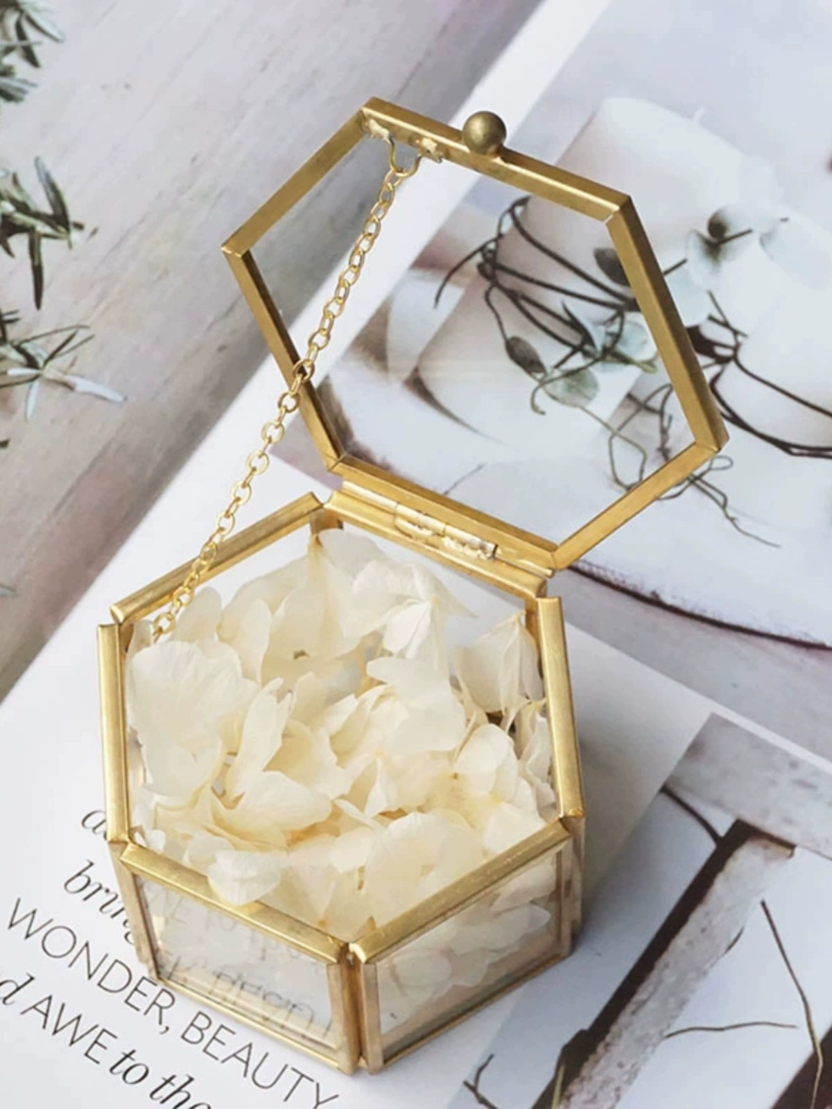| nameOriginal | European hexagonal ring box, retro copper-edged glass jewelry box, accessories storage box, eternal flower box display box |
