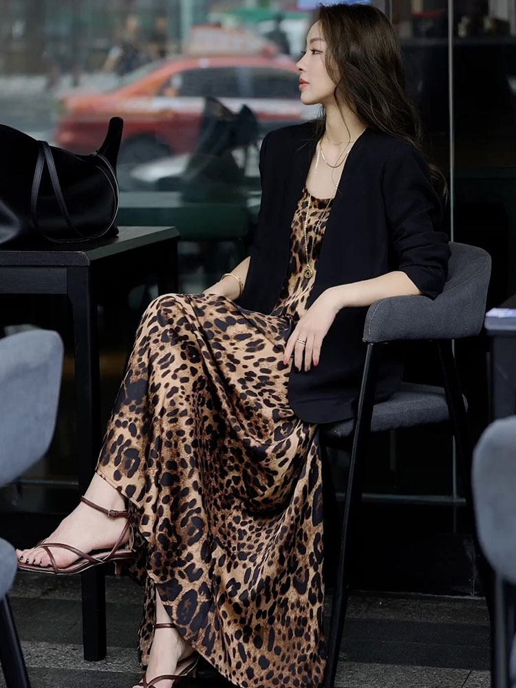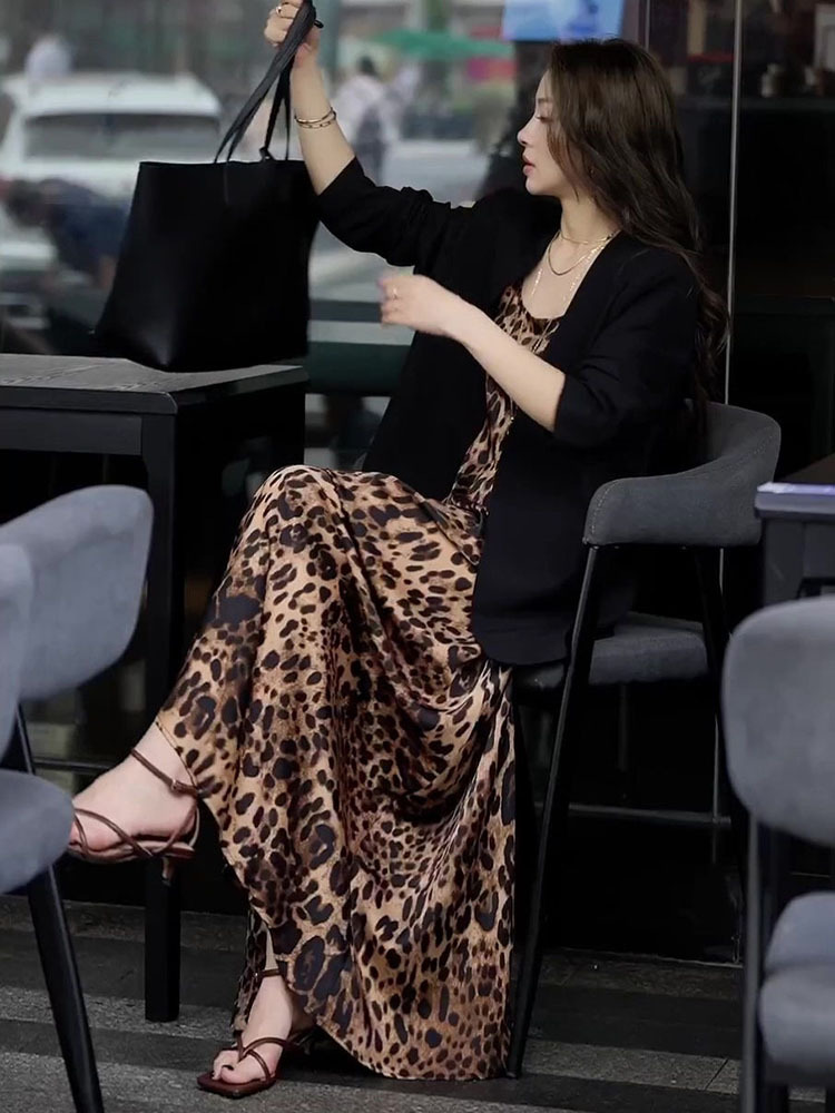 | nameOriginal | European High-end Exquisite Leopard dress Women's Summer Light Luxury Royal Sister Fashionable Chic Sling Two-piece Set |