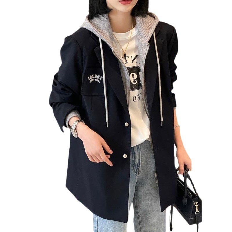 | nameOriginal | European Hooded Fake Two-piece Suit Jacket Women's Spring New Loose Retro Casual Slimming Small Suit Trendy |