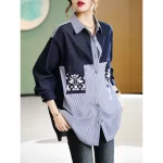 | nameOriginal | European large size loose contrast patchwork striped shirt |