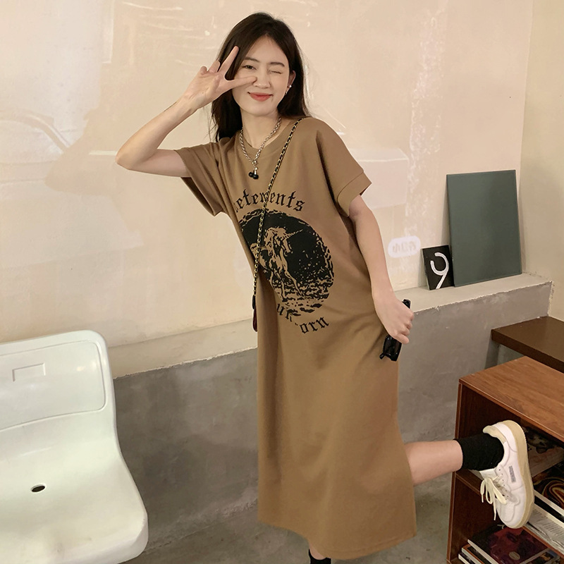 | nameOriginal | European large size skirt women's summer high-grade casual temperament straight casual T-shirt skirt loose split dress |