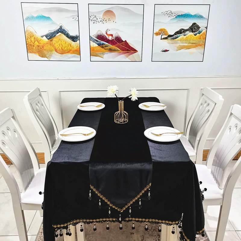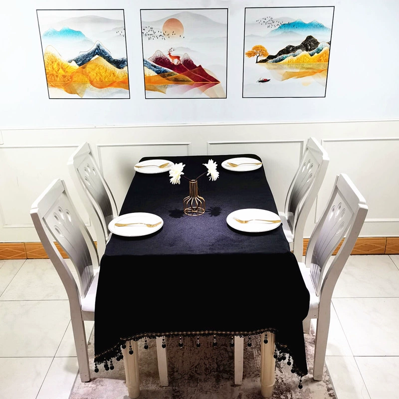| nameOriginal | European light luxury velvet tablecloth, simple round tablecloth, black tassel rectangular tablecloth, elegant coffee table cover |