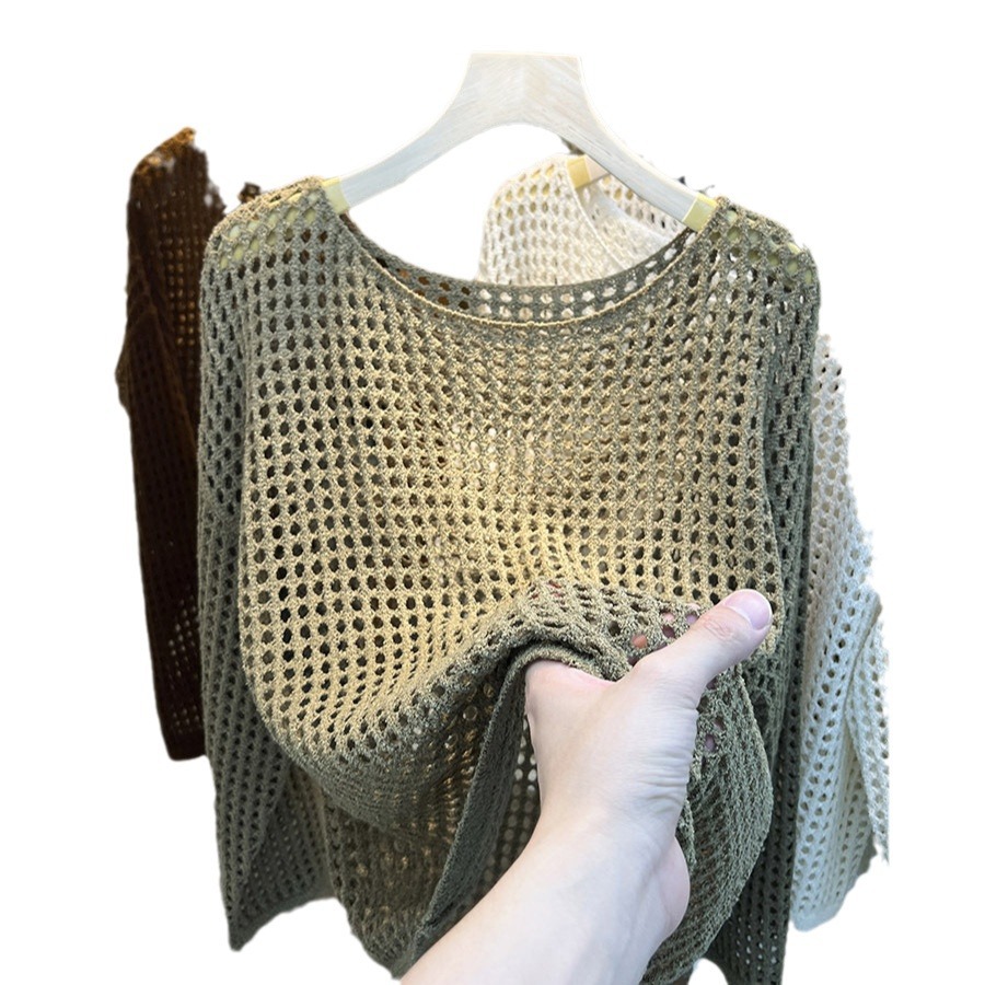 | nameOriginal | European Long-sleeved Hollow-out Knitted Mesh Shirt Women's Summer Thin Mesh Sunscreen Blouse New Style Top Mesh Shirt |