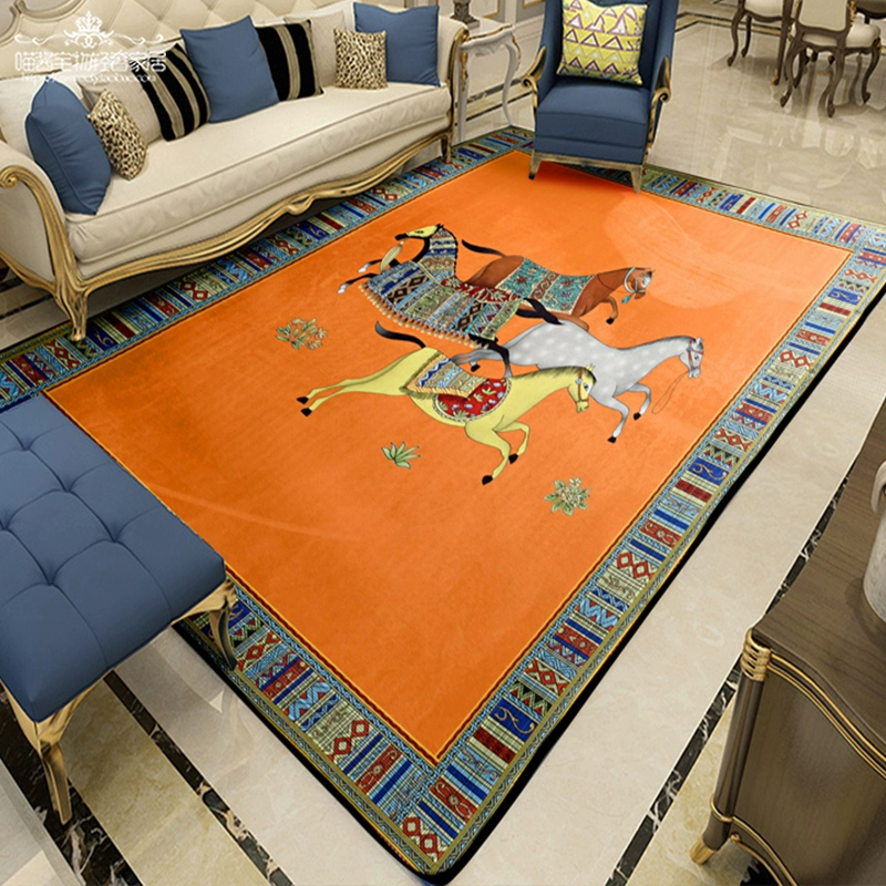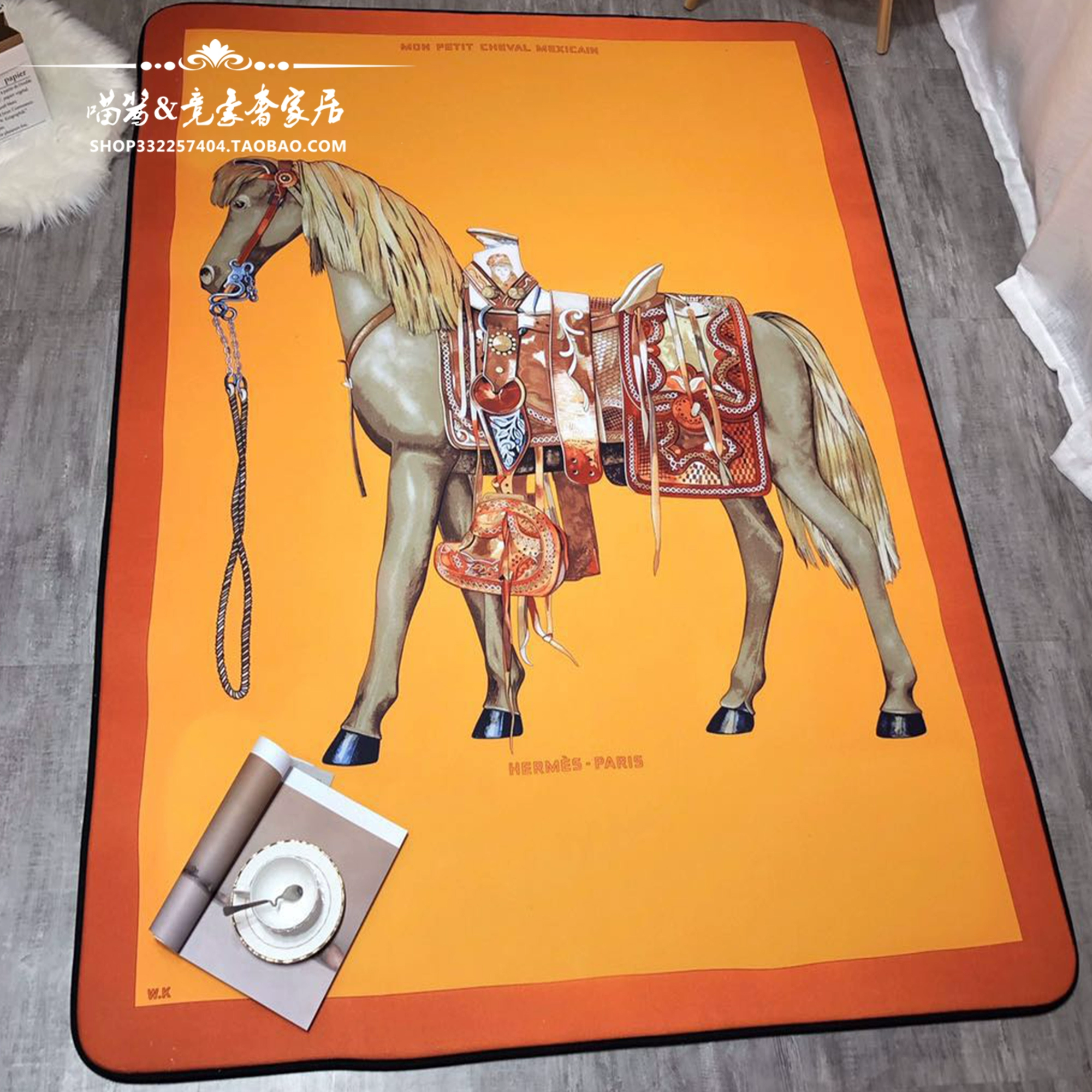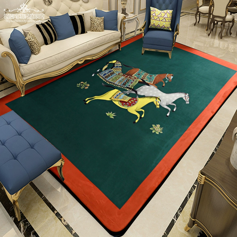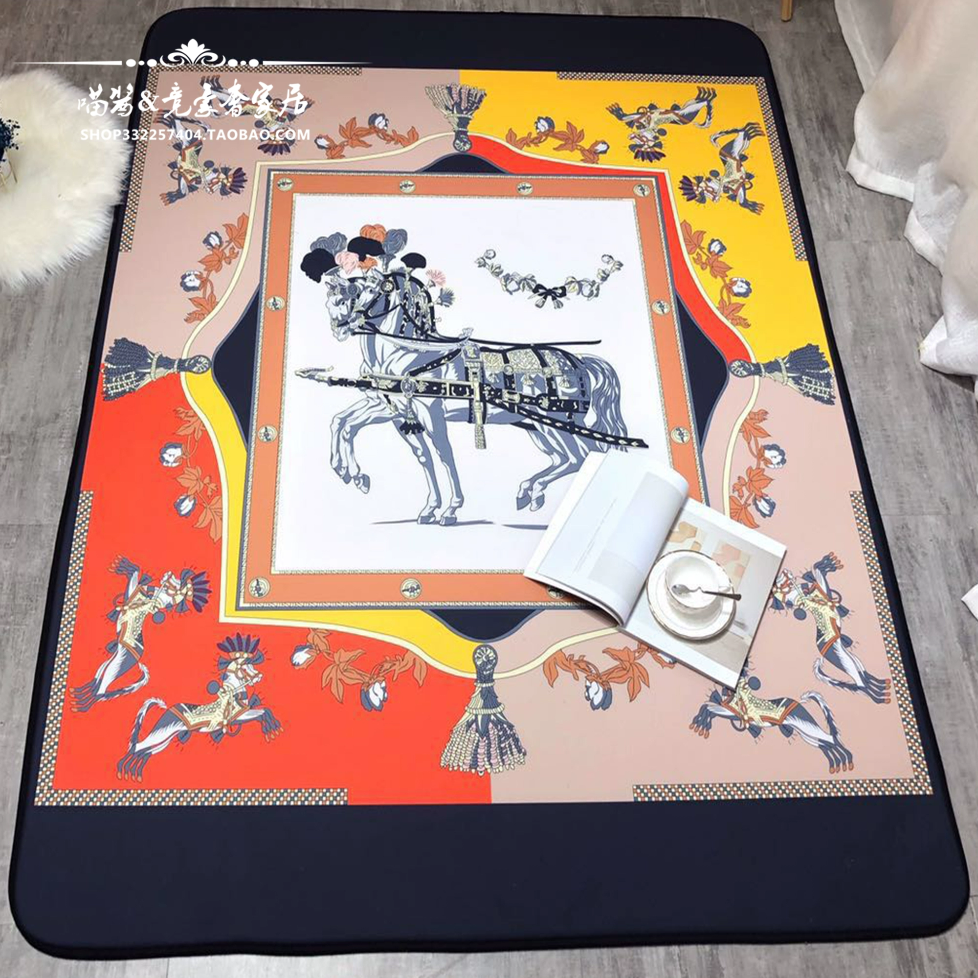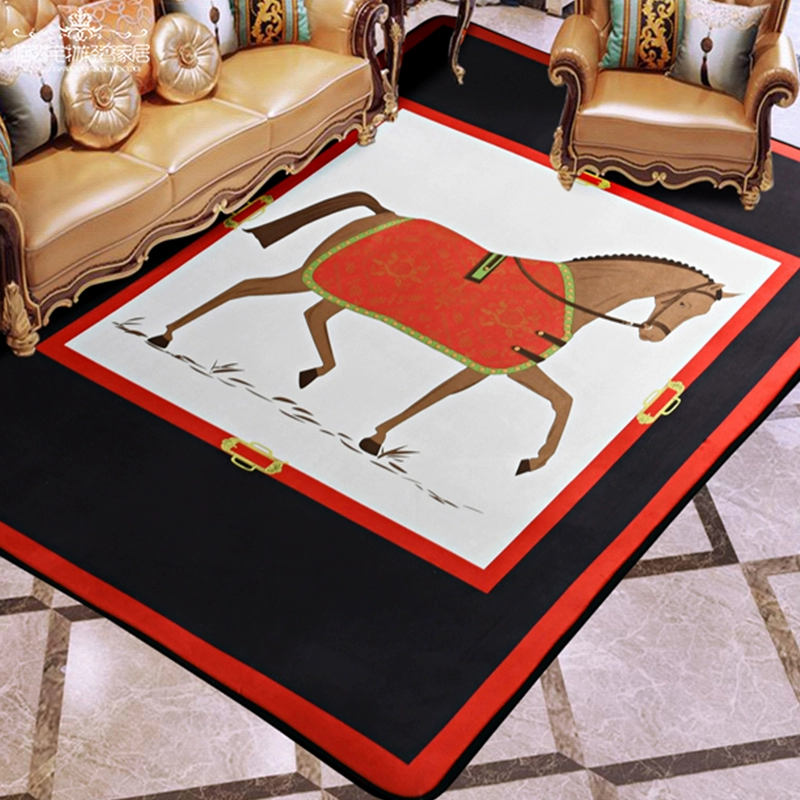 | nameOriginal | European luxury H horse crystal velvet thickened printed non-slip model house decorative carpet villa living room bedroom floor mat |
