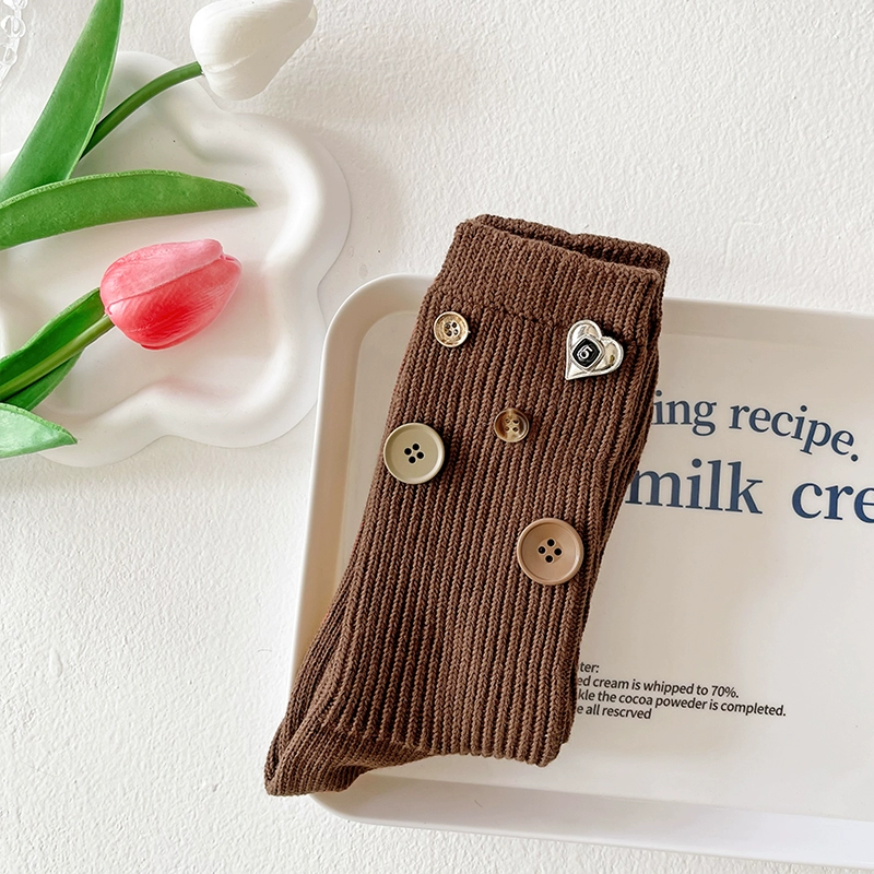 | nameOriginal | European retro heavy-duty button socks autumn and winter black thickened knitted solid color mid-tube socks female couples sports socks trendy |
