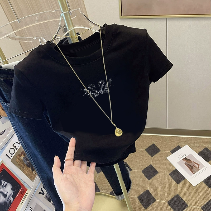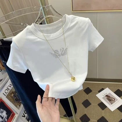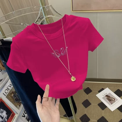 | nameOriginal | European rose red hot diamond right shoulder short-sleeved ins shirt |