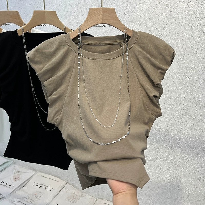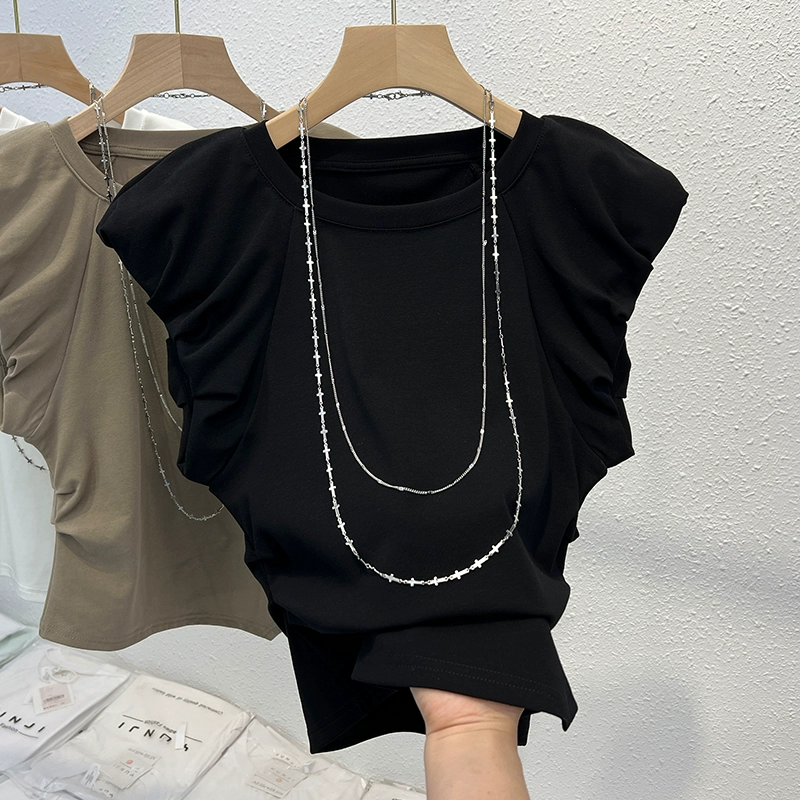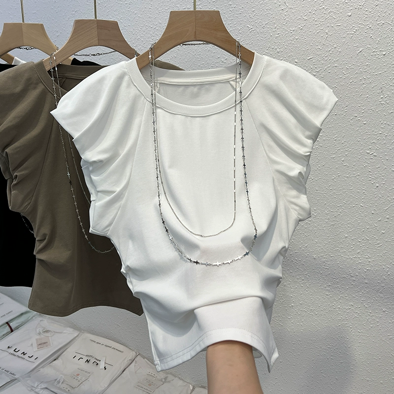 European short-sleeved T-shirt for women Xia Feifei sleeves fashionable and niche design irregular hot girl short top trendy
