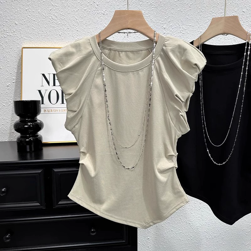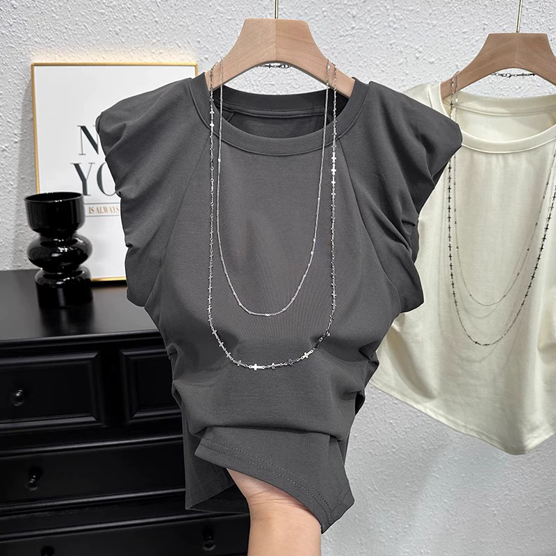 European Short Sleeve T -shirt Female Xia Feifei Sleeve Sleeve Fashion Niche Design Irregular Spicy Girl Short Top Tide