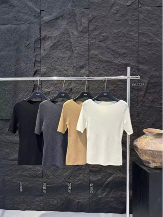 | nameOriginal | European Simple One-character Neck Merino Wool Knitwear Solid Color Thin Short-sleeved Top Slim-fit T-shirt Summer |