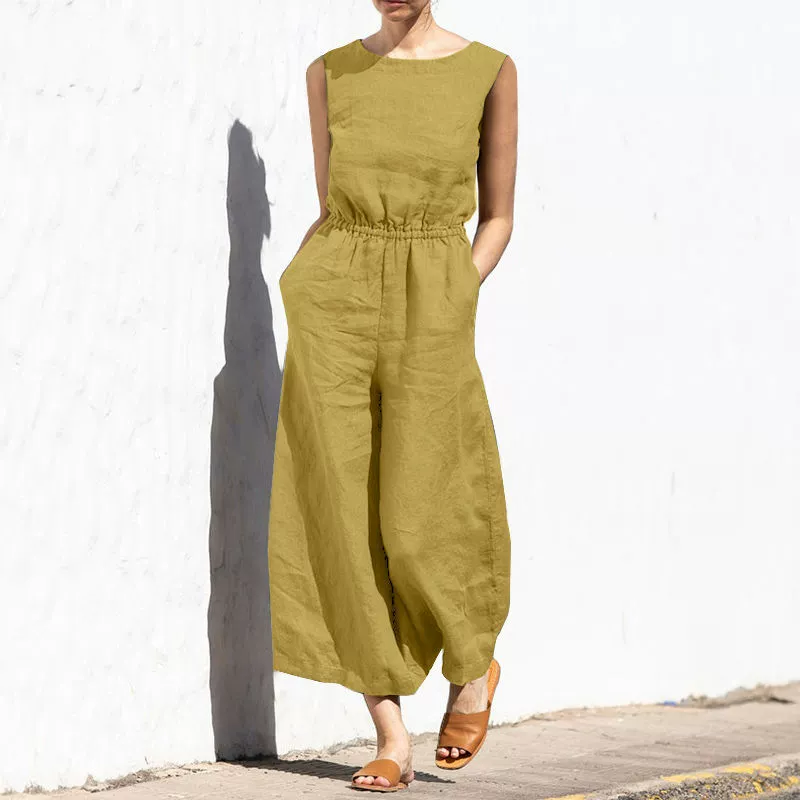 | nameOriginal | European Sleeveless High Waist Slim Casual Wide Leg Pants Linen |