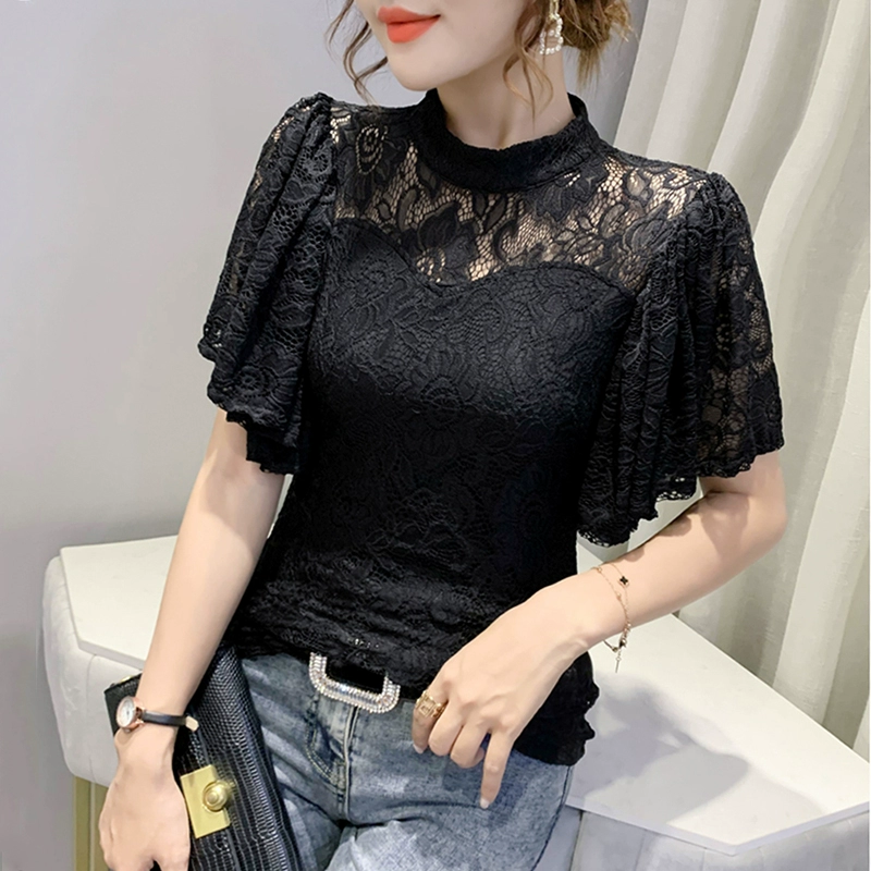 | nameOriginal | European Station 2022 Summer New Sexy Hollow Lace Top Women's Short-Sleeved Slim Fit Trumpet Sleeve Fashion Top Trendy |