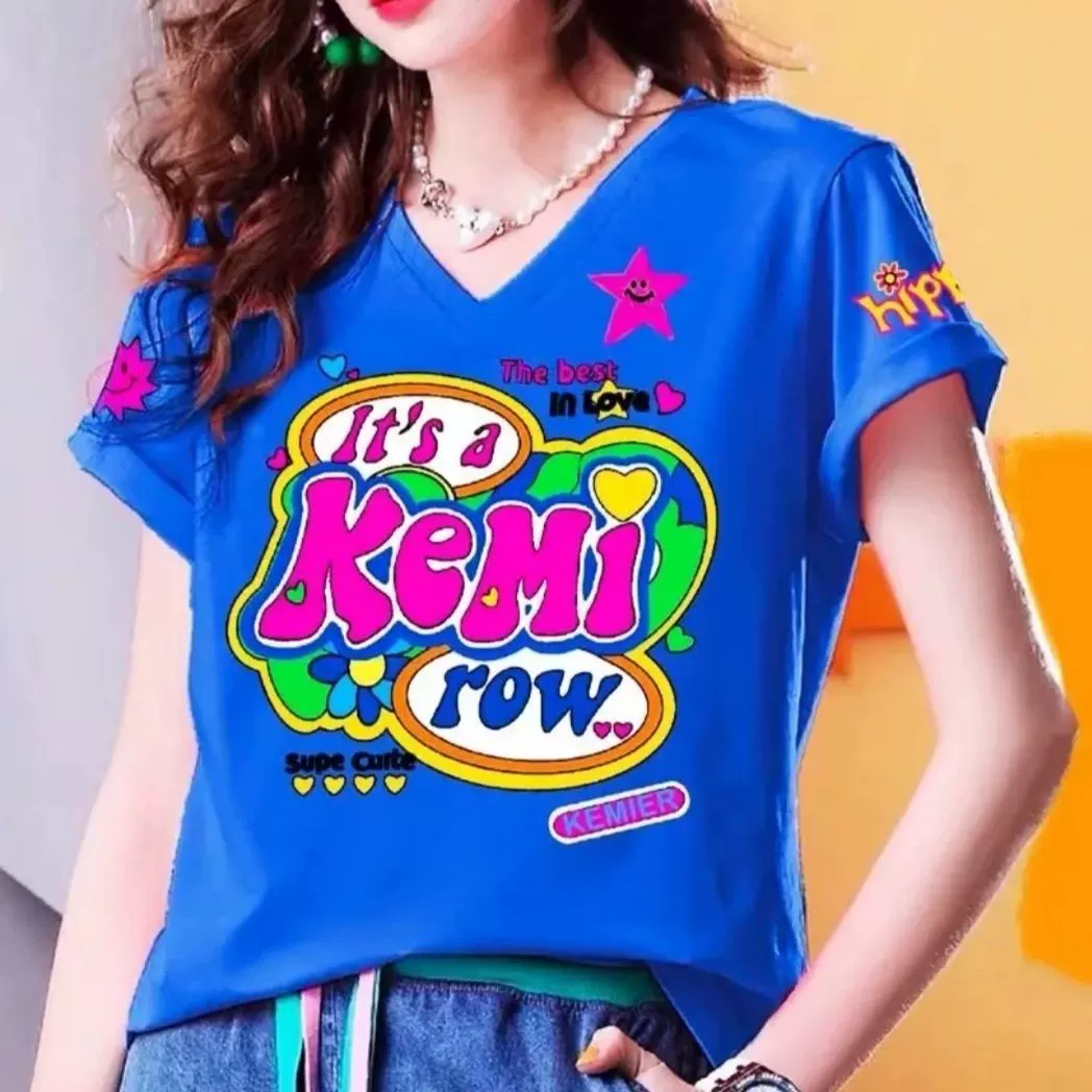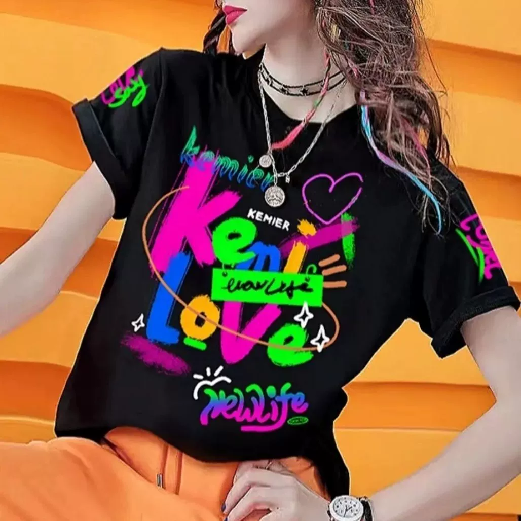 European station 2023 new summer style fashionable letter printed short-sleeved T-shirt for women, loose, slim and versatile top