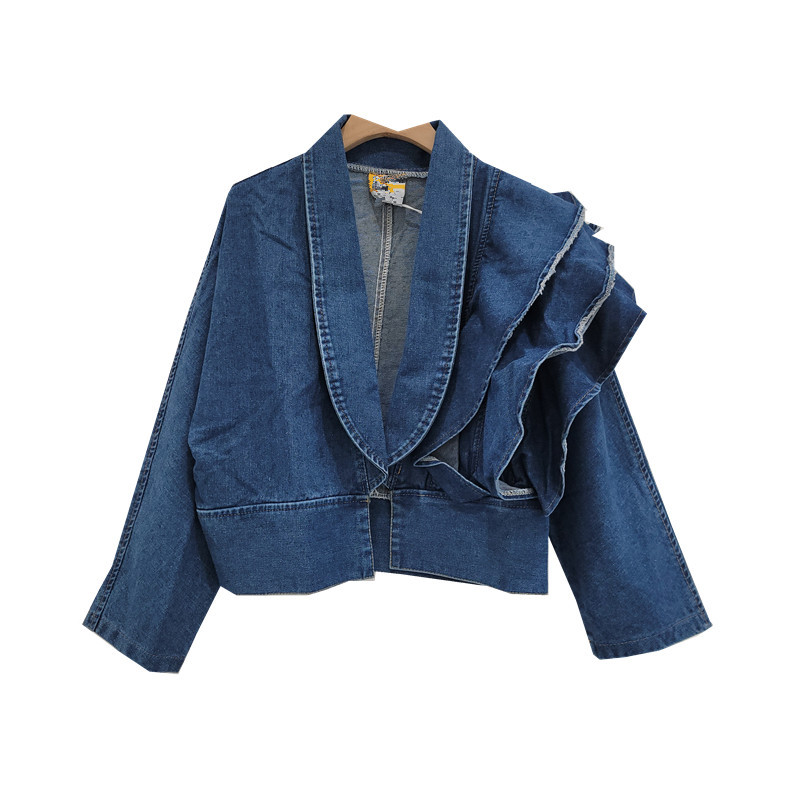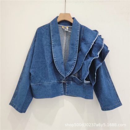 | nameOriginal | European station 2024 autumn new Korean fashion V-neck design ruffled long sleeve short Denim coat women's fashion |