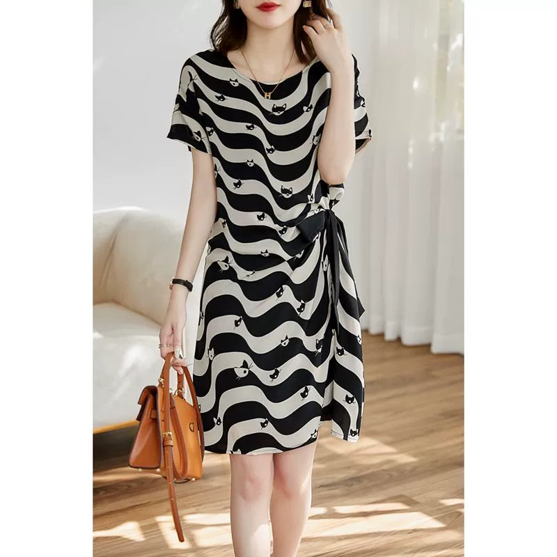 | nameOriginal | European station 2024 new summer Korean style striped cat print skirt sweet, fresh and mature style A-line dress |