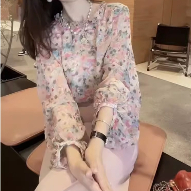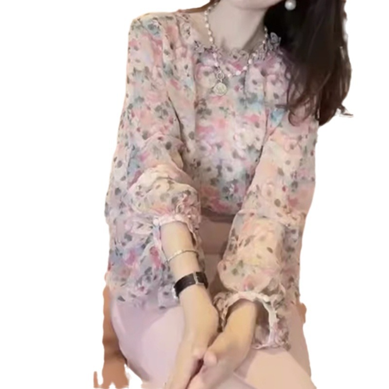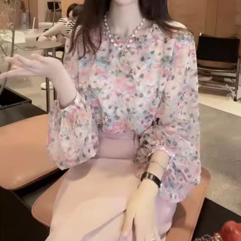 | nameOriginal | European Station 2024 Summer New Silk Shirt Women's Seven-point Sleeve Floral Design Sense Niche Slimming Chic Top |