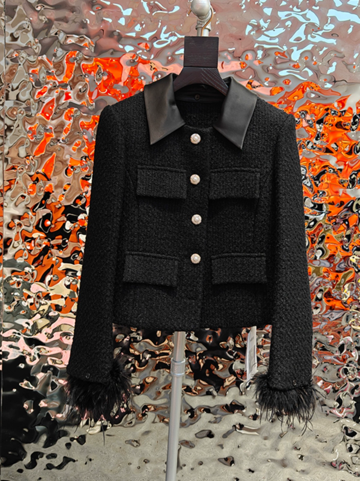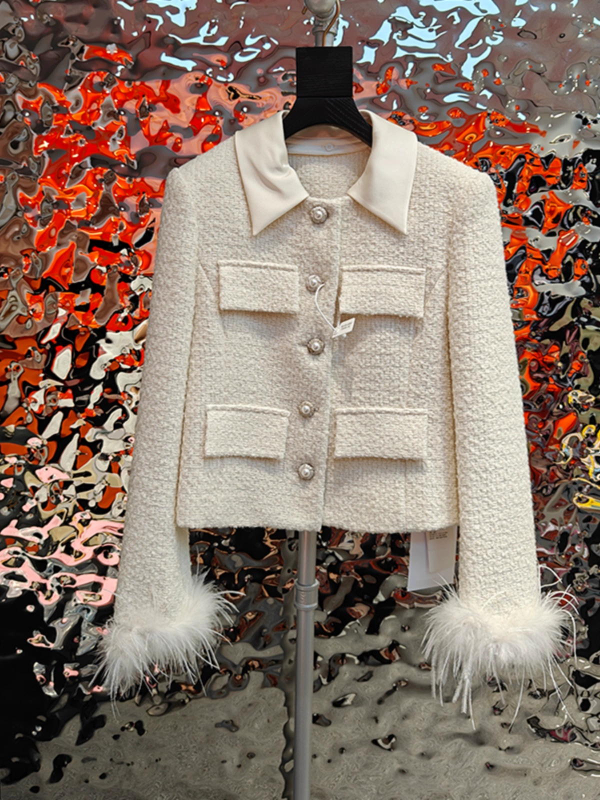 European station 24 autumn and winter new style collar ostrich feather cuffs detachable tweed small fragrance style celebrity short style