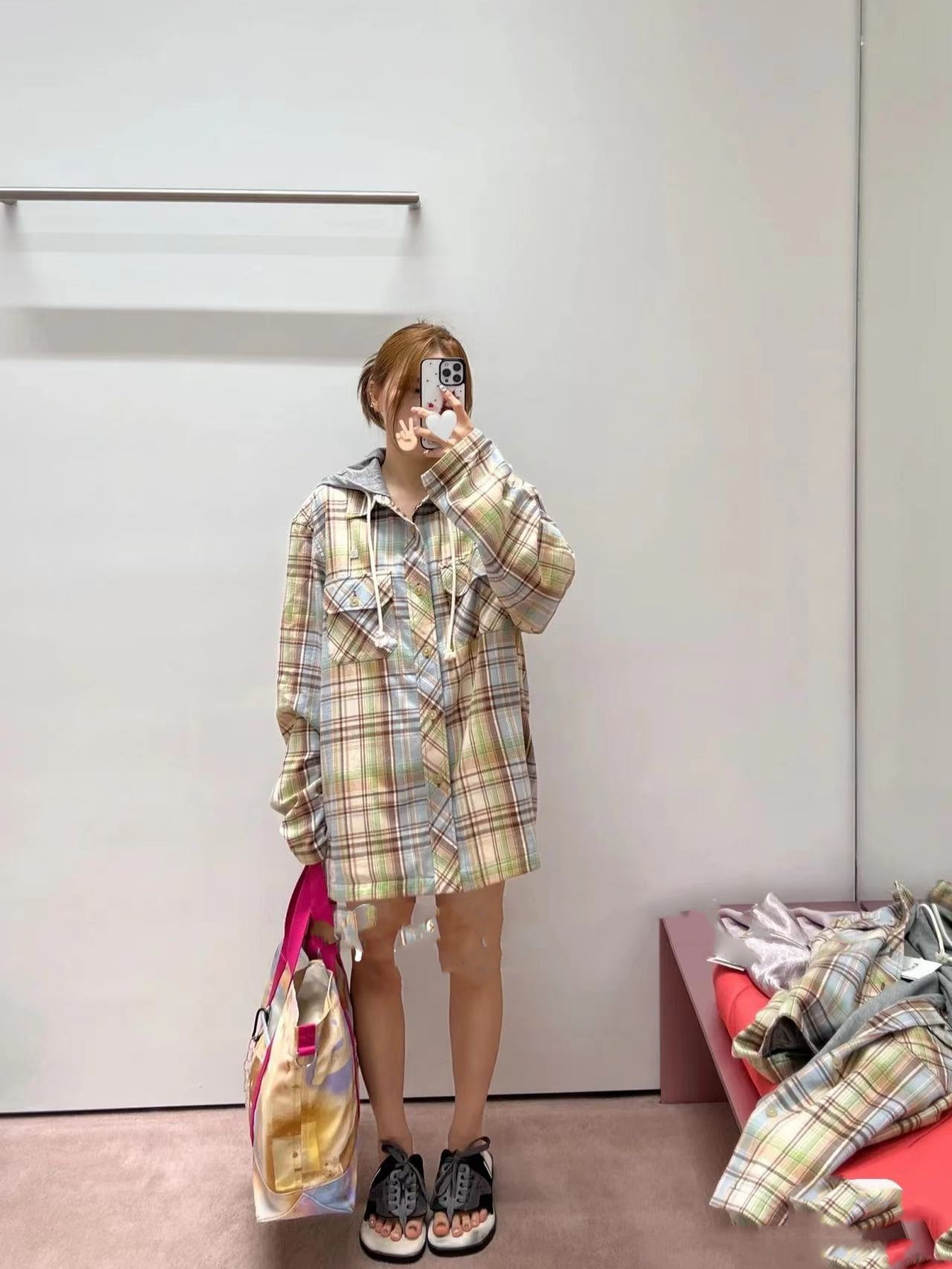 | nameOriginal | European Station 24 Years Early Autumn New Contrast Color Checkerboard Loose Knitted Hooded Shirt Jacket Jacket for Men and Women |