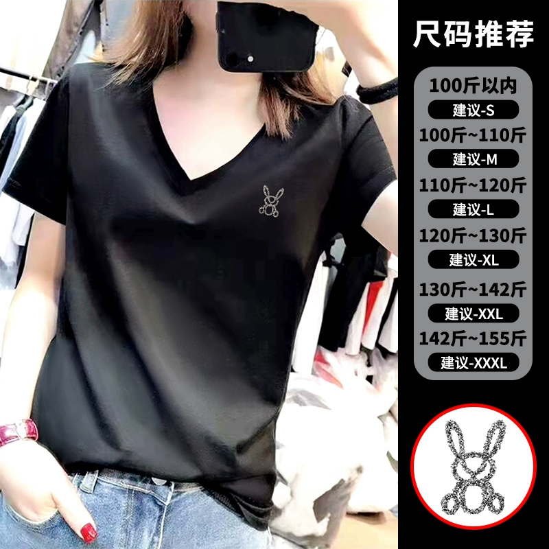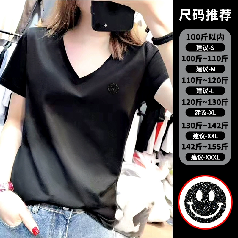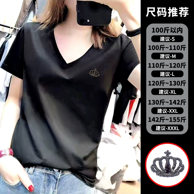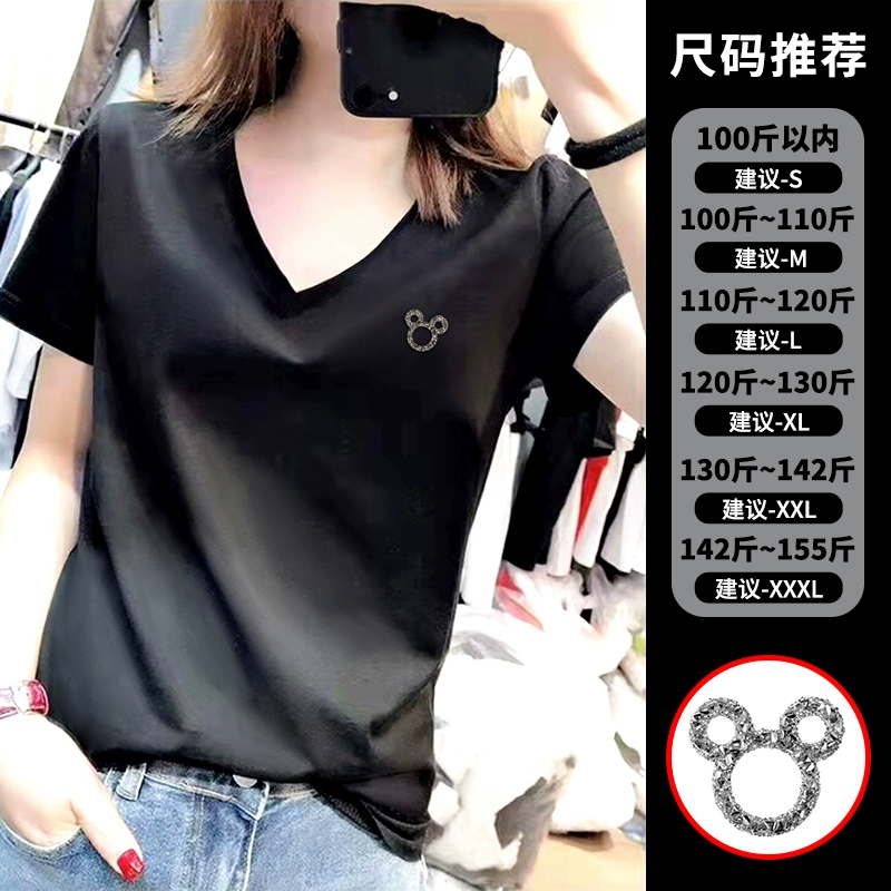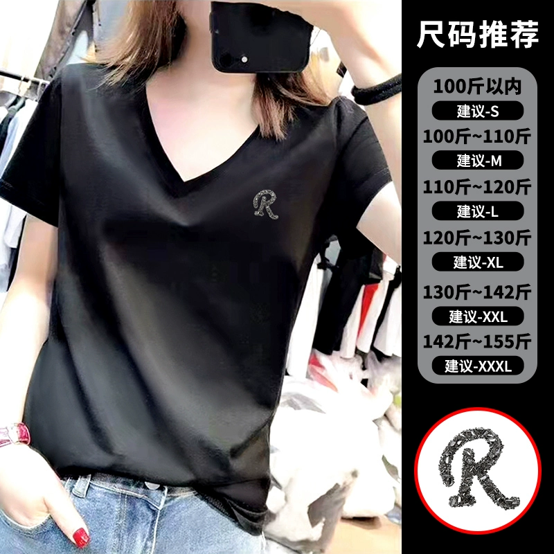 | nameOriginal | European station black V-neck short-sleeved slimming niche T-shirt |
