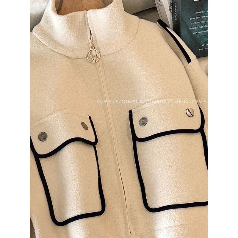 European station Chanel style fashionable stand collar woolen coat women’s loose baseball uniform jacket top 2023 Spring New