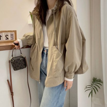 | nameOriginal | European Station Hooded Coat Women's All-match 2024 Spring and Autumn New plus size Coat Pleated Waist Slimming Outer Top |