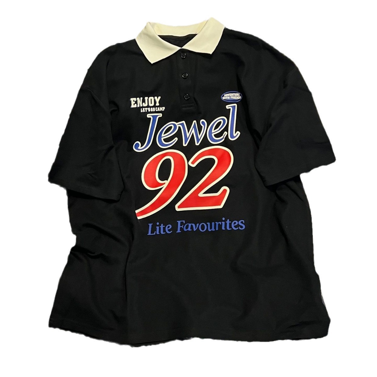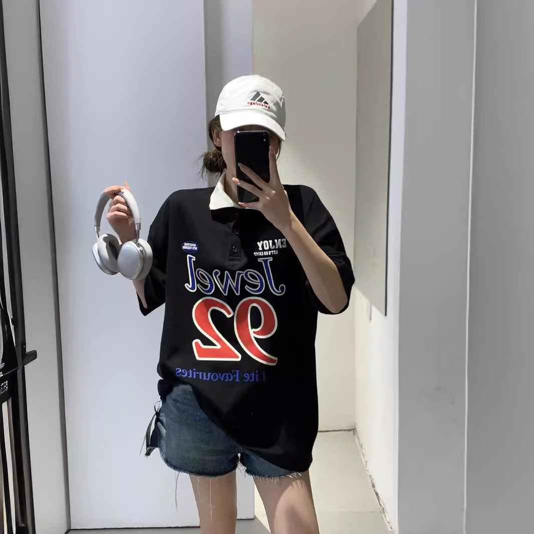 European Station Lazy Style Coloring Lar Creative Pattern Letter Printed Short-sleeved POLO Shirt Loose Top for Women