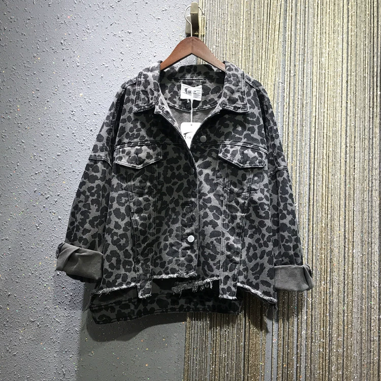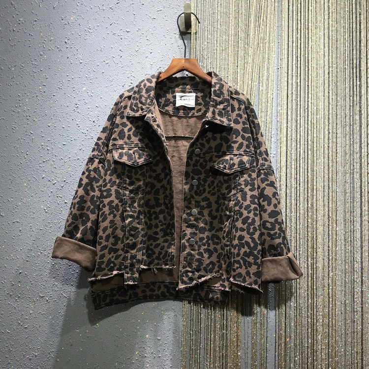 | nameOriginal | European station leopard print BF style lapel long-sleeved denim jacket |