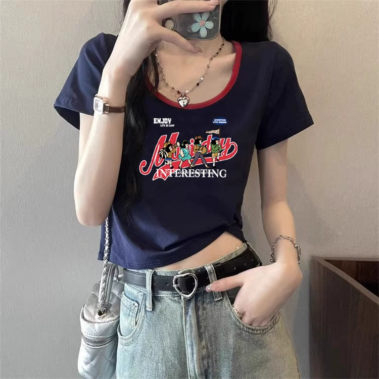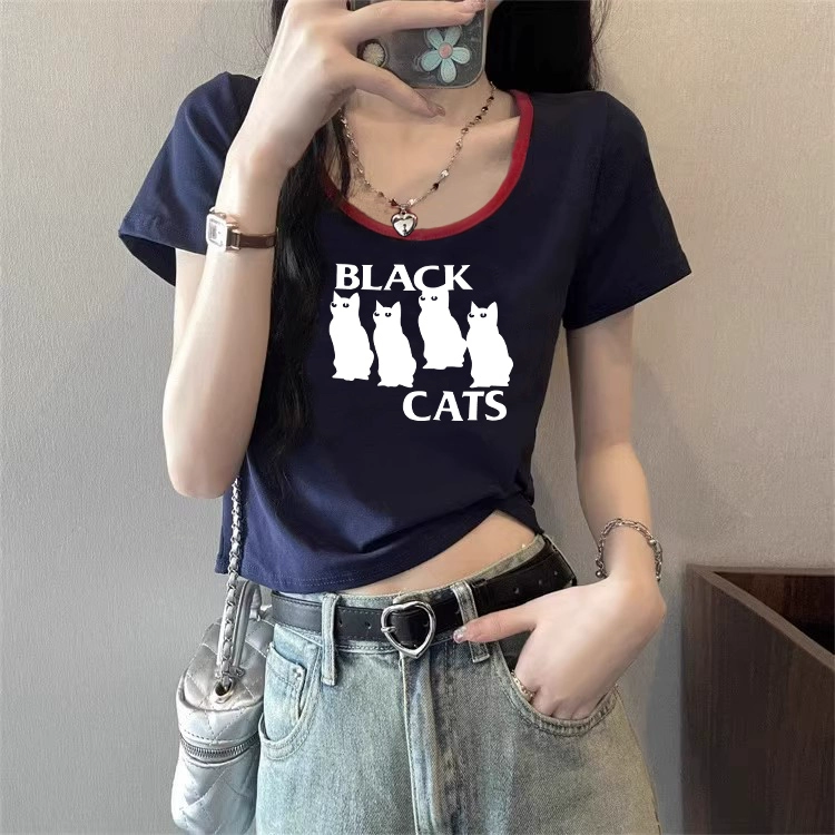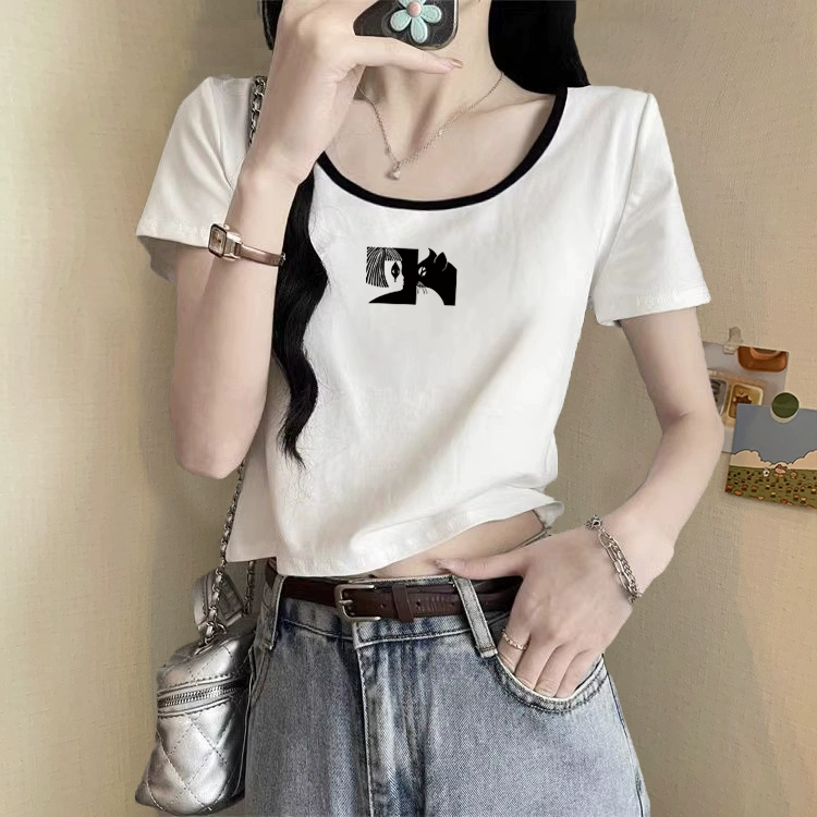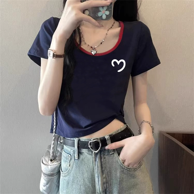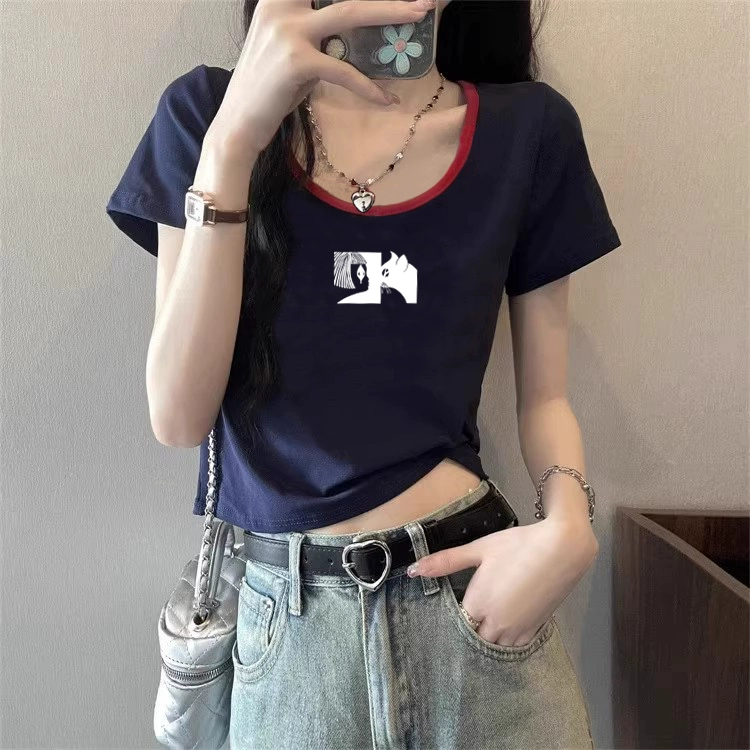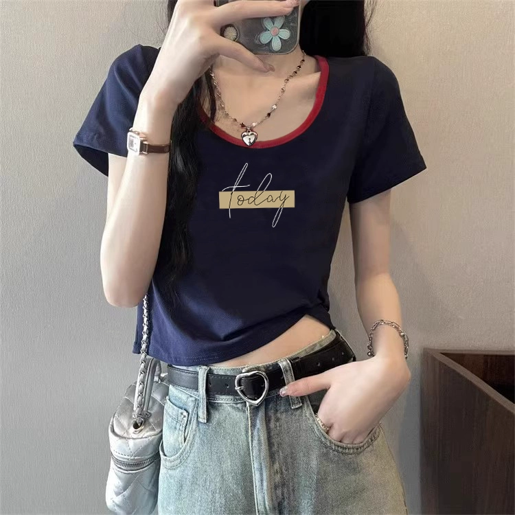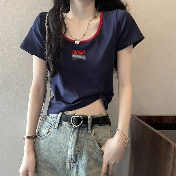 | nameOriginal | European station right shoulder contrast color summer pure cotton short-sleeved T-shirt |