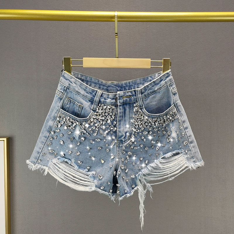 | nameOriginal | European station ripped summer high waist diamond denim shorts |