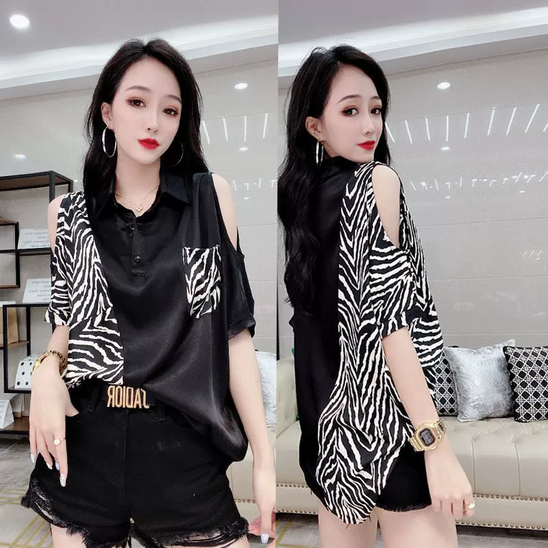 | nameOriginal | European station sexy leopard print off-the-shoulder trendy color-blocked shirt |