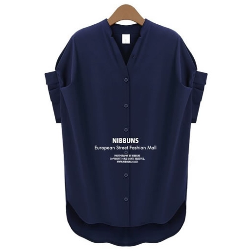 European station shirt V -neck is loose, thin and versatile short sleeves