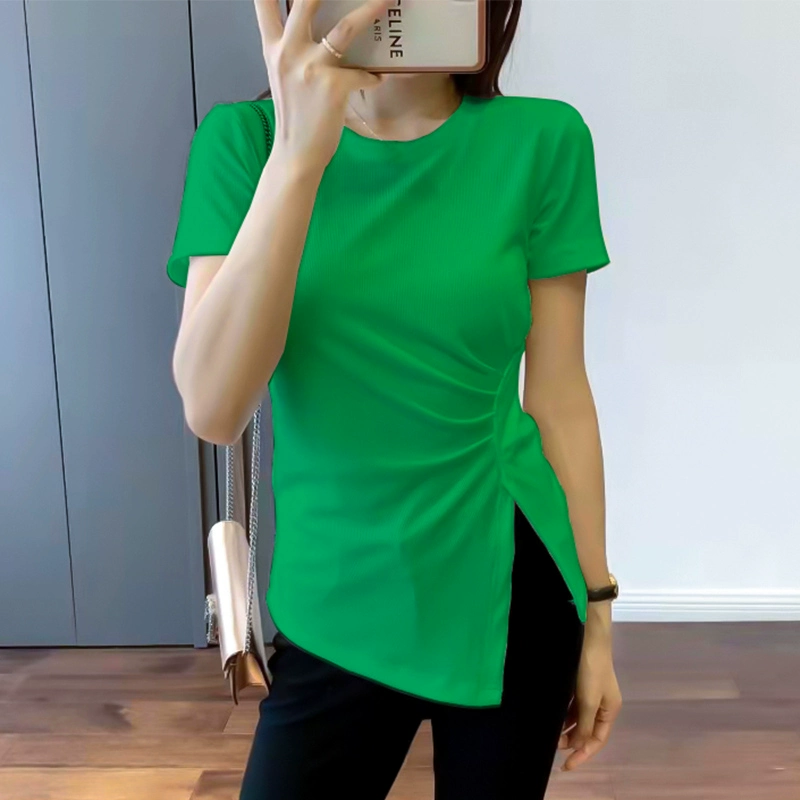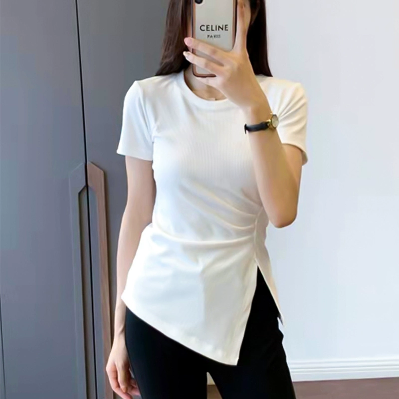 | nameOriginal | European station slit slim design short-sleeved T-shirt |