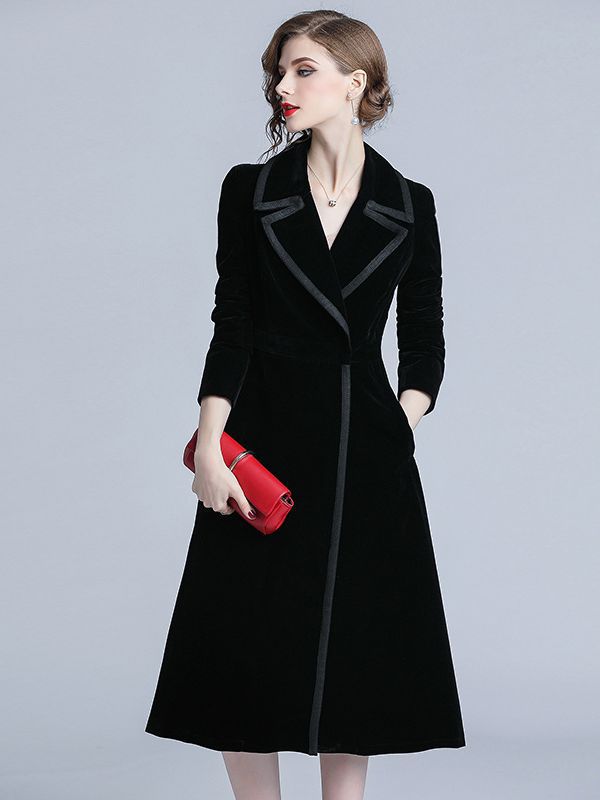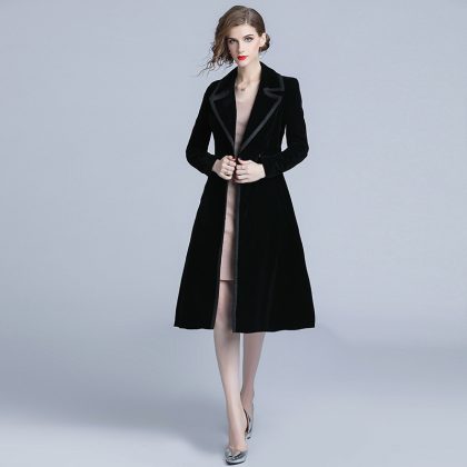 | nameOriginal | European station socialite fashionable mid-length black velvet trench coat cross-border women's clothing Spring and Autumn New goddess coat |
