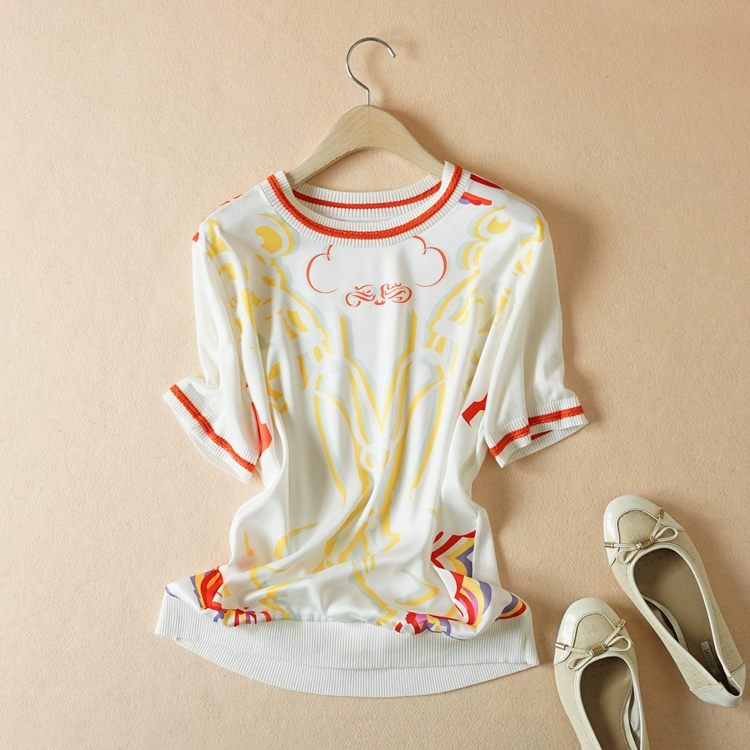 European station thin loose top printed short-sleeved T-shirt