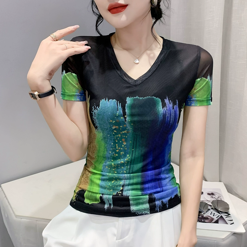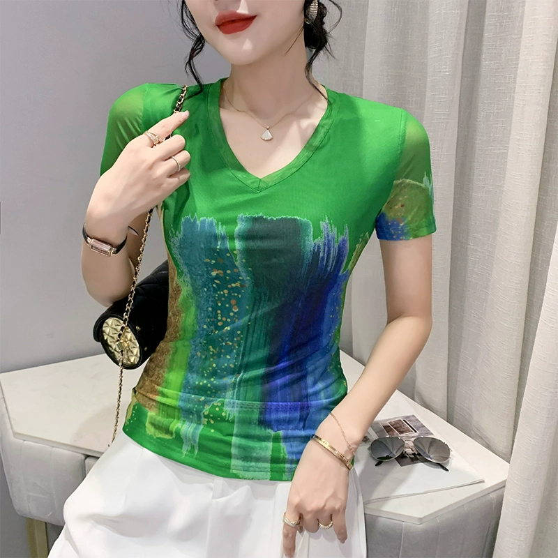 European station V-neck T-shirt personalized women's printed slim shirt