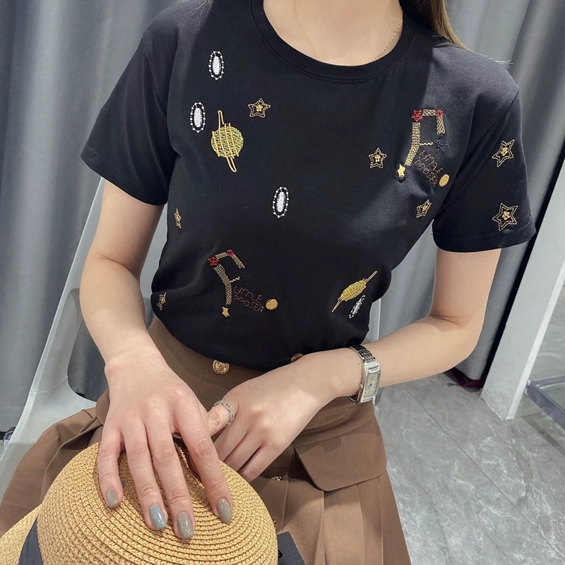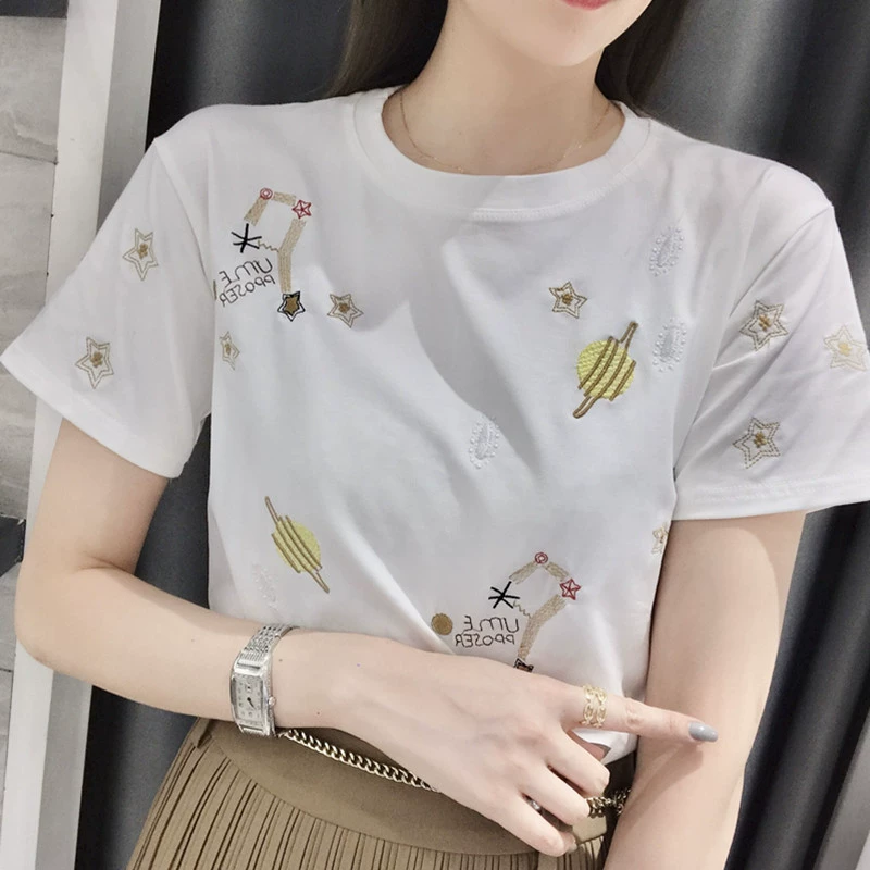 | nameOriginal | European station white short-sleeved t-shirt for women summer 2024 new European pure cotton half-sleeved embroidered versatile top trendy |