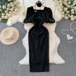 European station new fashionable temperament celebrity elegant short-sleeved dress with high-end hip-covered hot diamond square collar dress